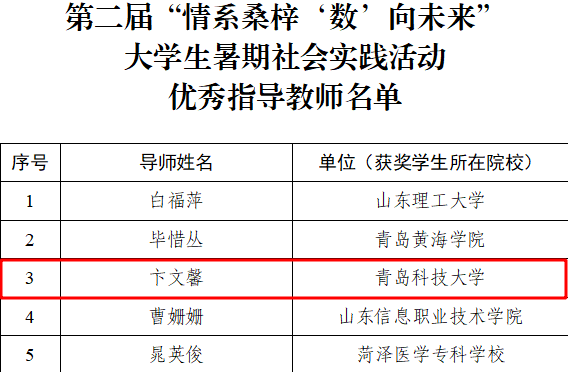 近日,由山东省大数据局、共青团山东省委、山东省教育厅联合举办的第二届“情系桑梓 ‘数’向未来”青年学生暑期社会实践活动结果公布,数据科学学院团委荣获优秀指导教师一名,一等奖一项,优秀奖一项。