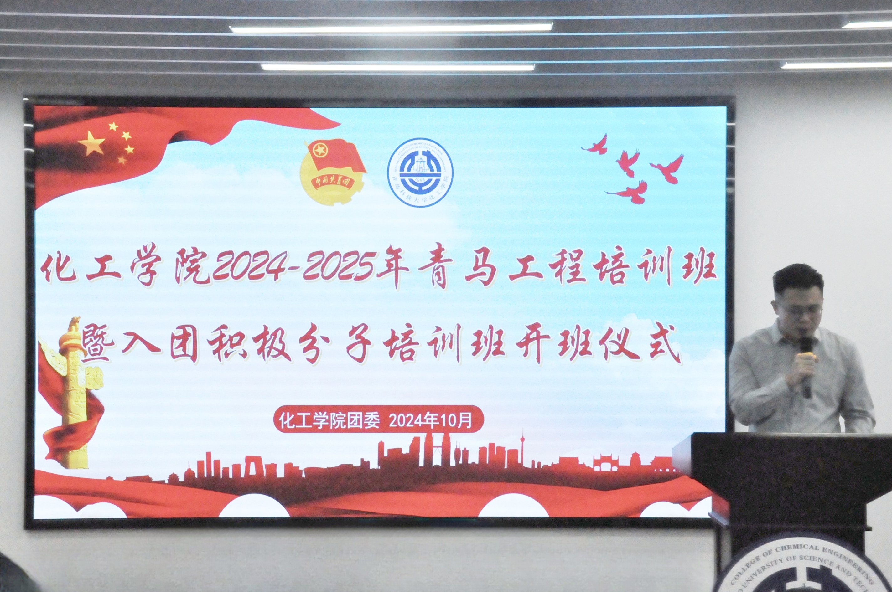 为深入学习贯彻习近平总书记系列重要讲话精神,培养德才兼备、全面发展的青年马克思主义者,不断提高青年学生骨干的思想政治素质、理论政策水平、实践创新能力,10月22日,化工学院团委在CCF楼814报告厅举行2024-2025年青马工程培训班暨入团积极分子培训班开班仪式。化工学院党委副书记兼副院长贾建闯,化工学院团委书记杜宗杰、全体辅导员、各年级团干部参加了本次活动。开班仪式由化工学院团委副书记柳晓阳主持。