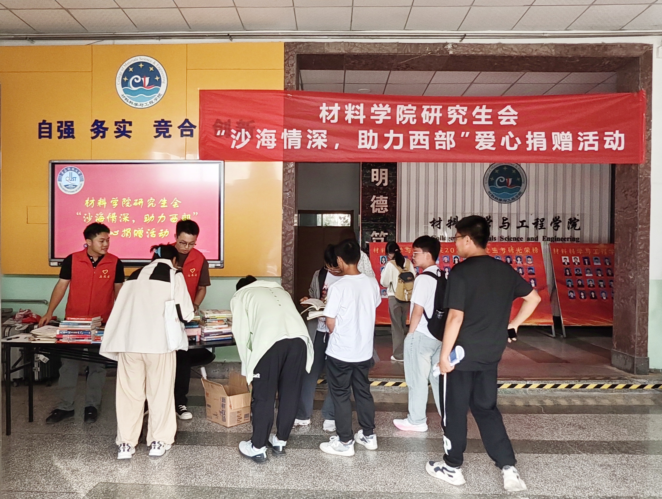 材料学院团委研究生会通过前期问卷调查和新生座谈会了解到:学期结束后,许多青年学生的学科类书目和名著类书籍往往被遗弃或闲置,缺乏有效的二手书平台进行再利用。新生入学时,通常难以找到合适的平台购买价格合理且保存良好的二手学科类书籍。同时许多青年学生有心帮助西部地区的青年学生改善学习条件,但由于缺乏合适的途径和平台,助力行动常常难以落地或影响有限。针对以上问题材料学院团委研究生会举行了“沙海情深 助力西部”图书捐助活动。