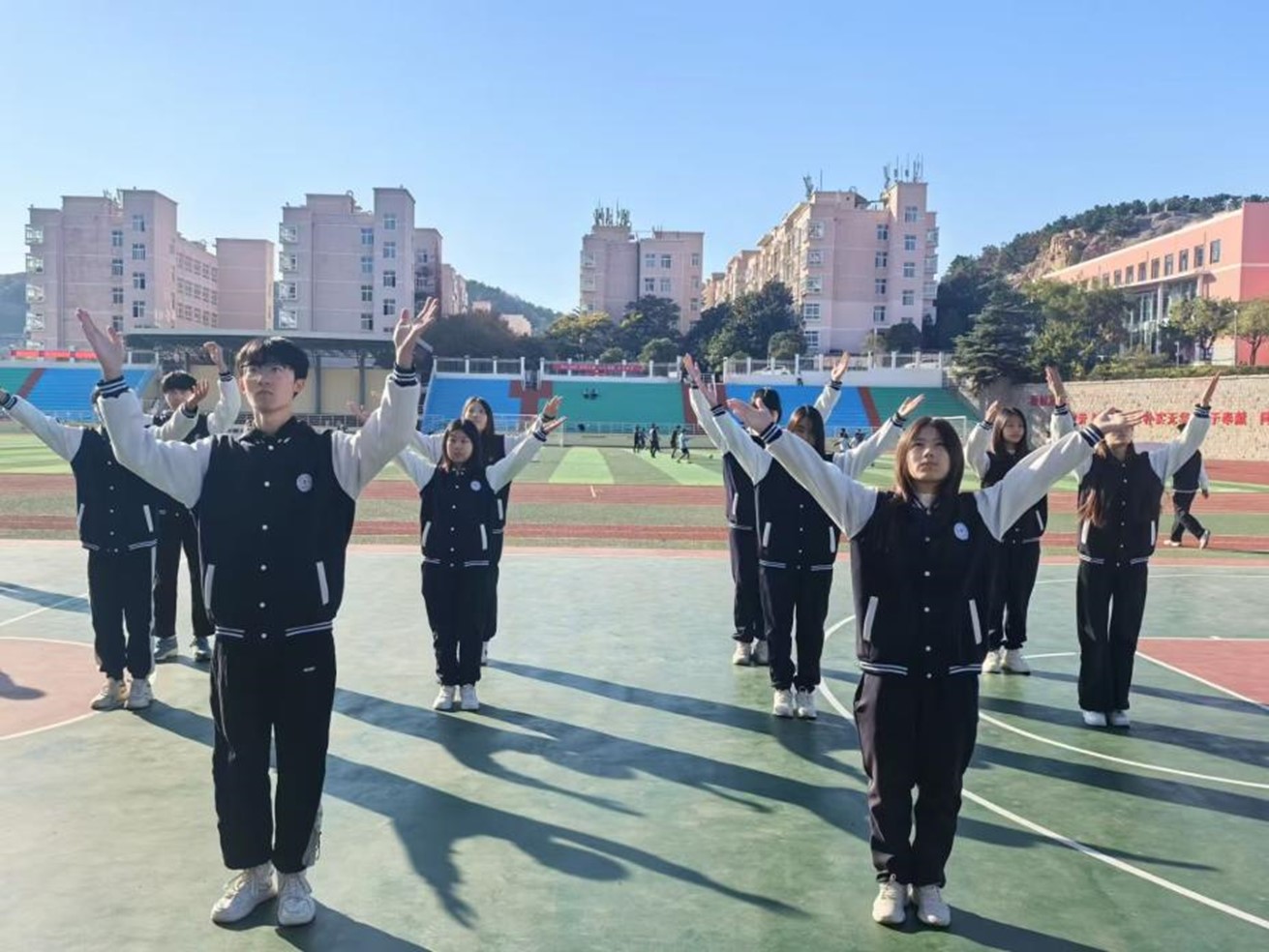 为响应学校举办“AC米兰中国官网2024年‘青春正当时·活力青科大’健美操啦啦操大赛”的号召,提高广大青年学生参加体育赛事的积极性,锻炼学生身体协调性,信息学院于11月5日下午在南苑操场举办“舞动青春·悦动生活”健美啦啦操院级联赛。本次院赛共有12支队伍参加,比赛规定动作为第九套广播体操。