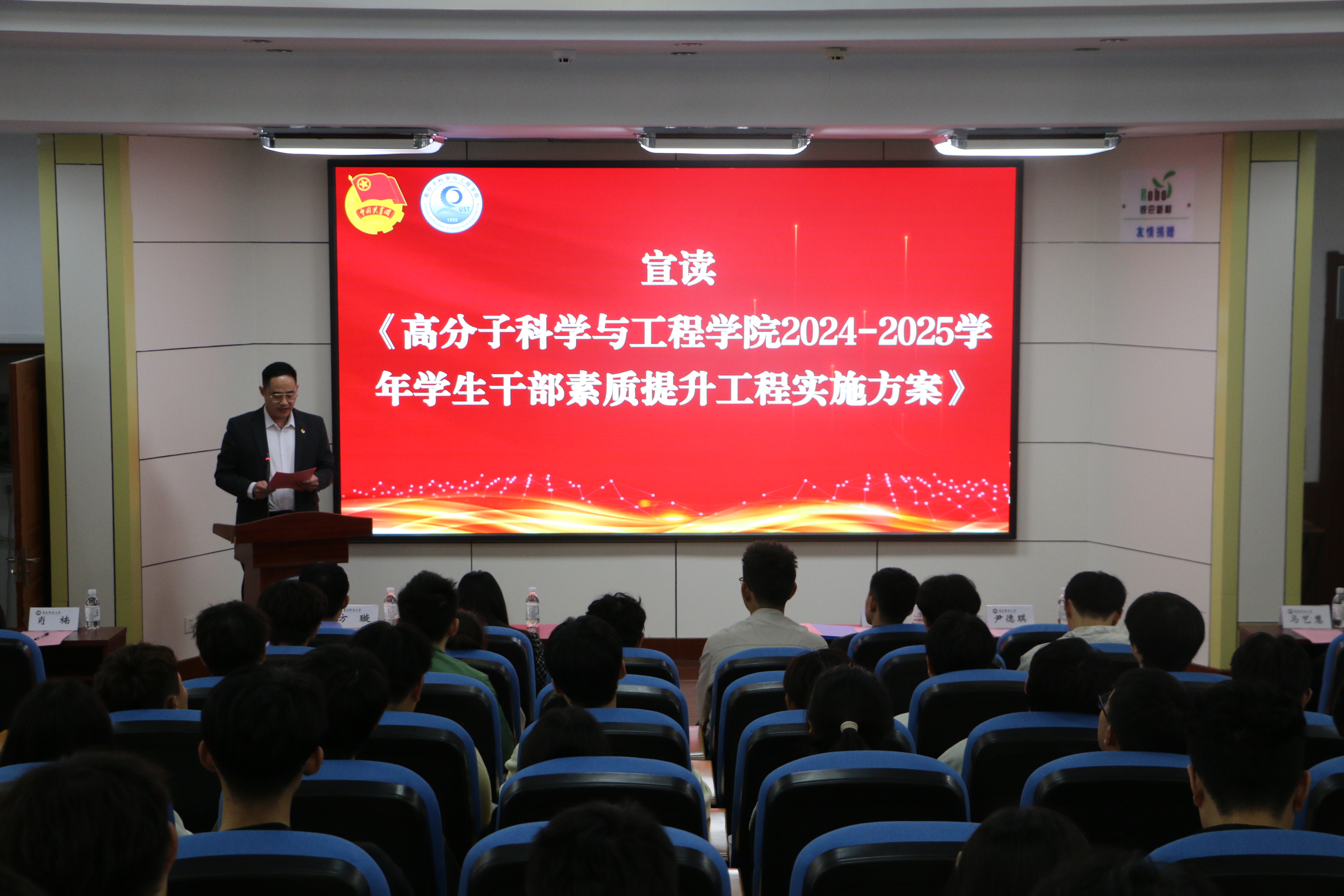为深入贯彻习近平总书记关于青年工作的重要思想,加强对青年大学生的思想政治引领,11月12日下午,高分子科学与工程学院在阿朗新科报告厅举办2024年青马工程暨学生干部素质提升工程培训开班仪式。高分子学院党委副书记兼副院长贾明明出席仪式。
