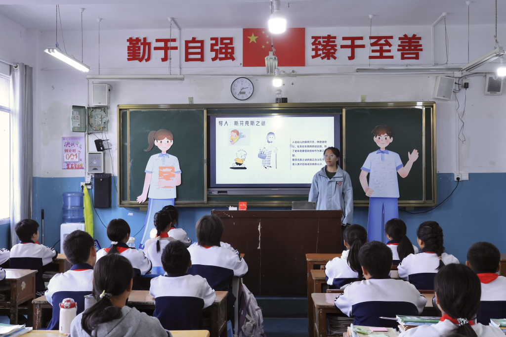 “我脑子笨”、“我个子矮”......课堂上,青春期的孩子们诉说着自己的苦恼,他们把外界的评价当作客观事实从而产生自我标签,这种青春成长中的“拦路虎”让孩子们很容易陷入焦虑与困惑的自我怀疑之中。经济与管理学院学生会联合心理中心志愿者以情景设置、互动问答为引,结合青春期学生特点入手,围绕“我是谁”、“我想成为一个怎样的人”等最吸引学生深思的议题,为同学们举例讲解了相关知识。帮助学生正确认识自我,学会关爱自我,形成自尊自信、积极向上的心态,完成一场青少年发展中的自我探索之旅。