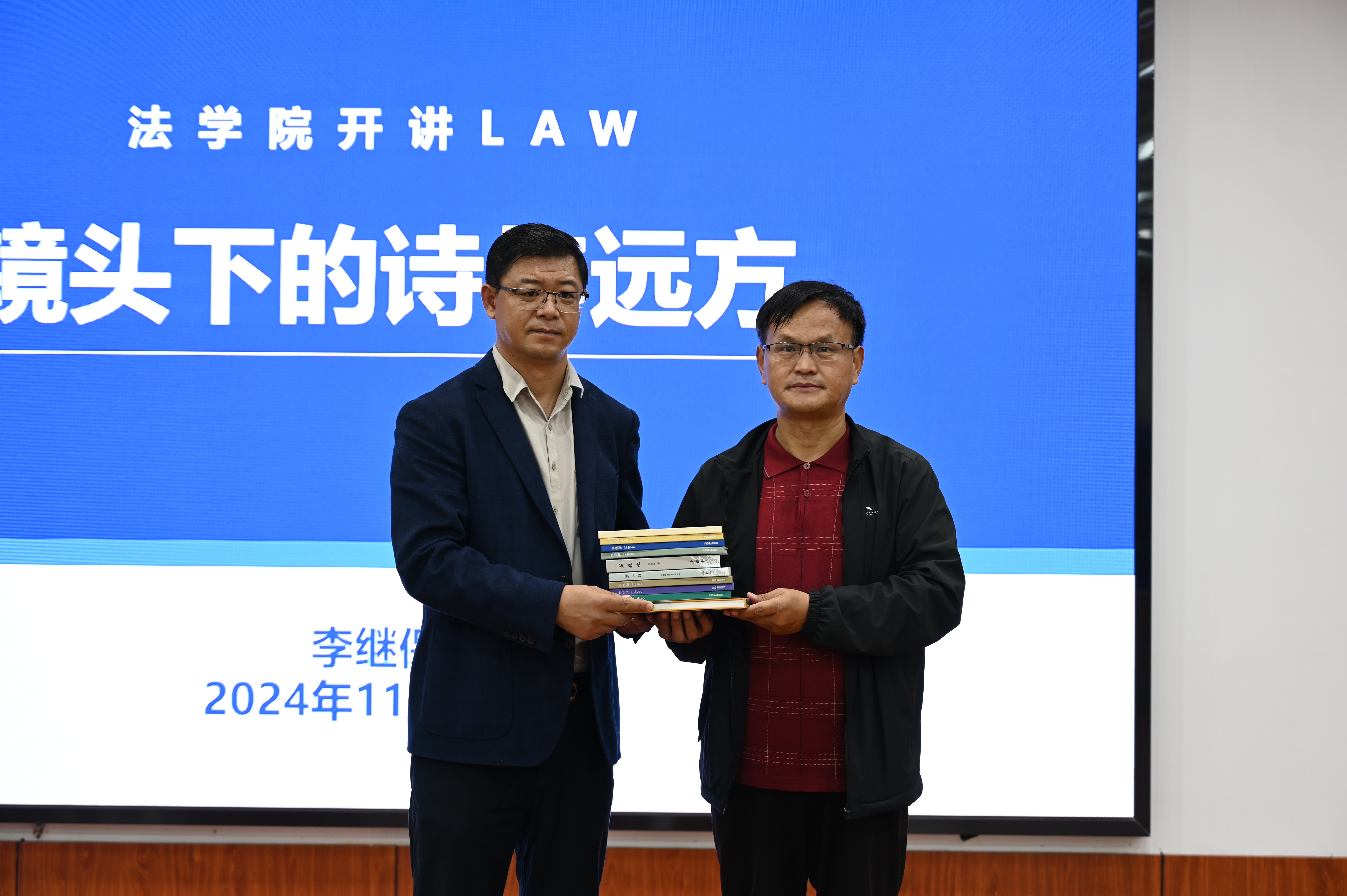 11月16日上午,中国摄影著作权协会会员、新华社签约摄影师李继保做客法学院开讲LAW,与青年学子共同分享摄影的乐趣所在。法学院党委书记曲明参加活动。