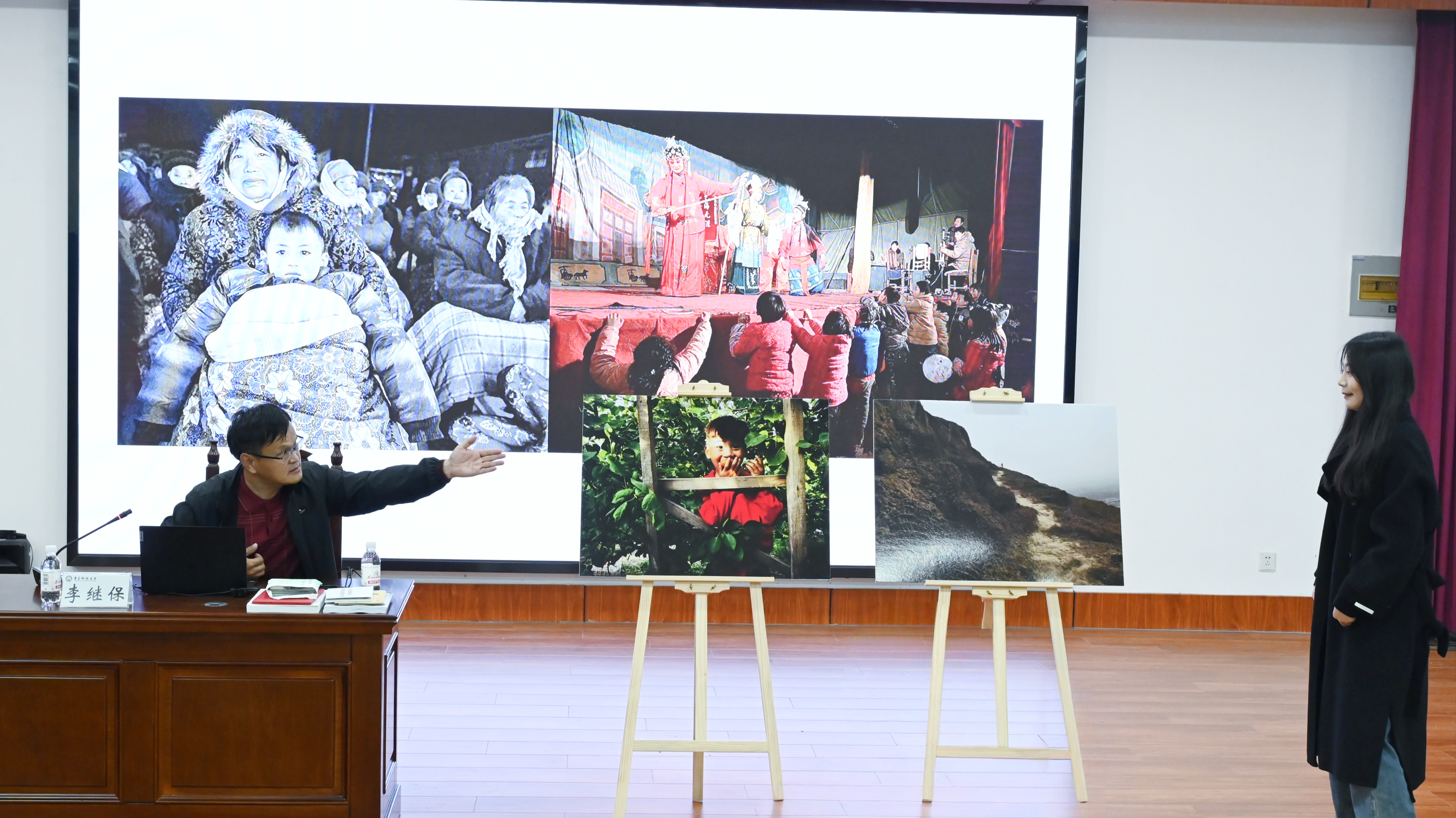 李继保为学院悦读轩捐赠了摄影集,并在悦读轩为青年学子解读自己的作品。曲明为李继保颁发校外指导教师证书。