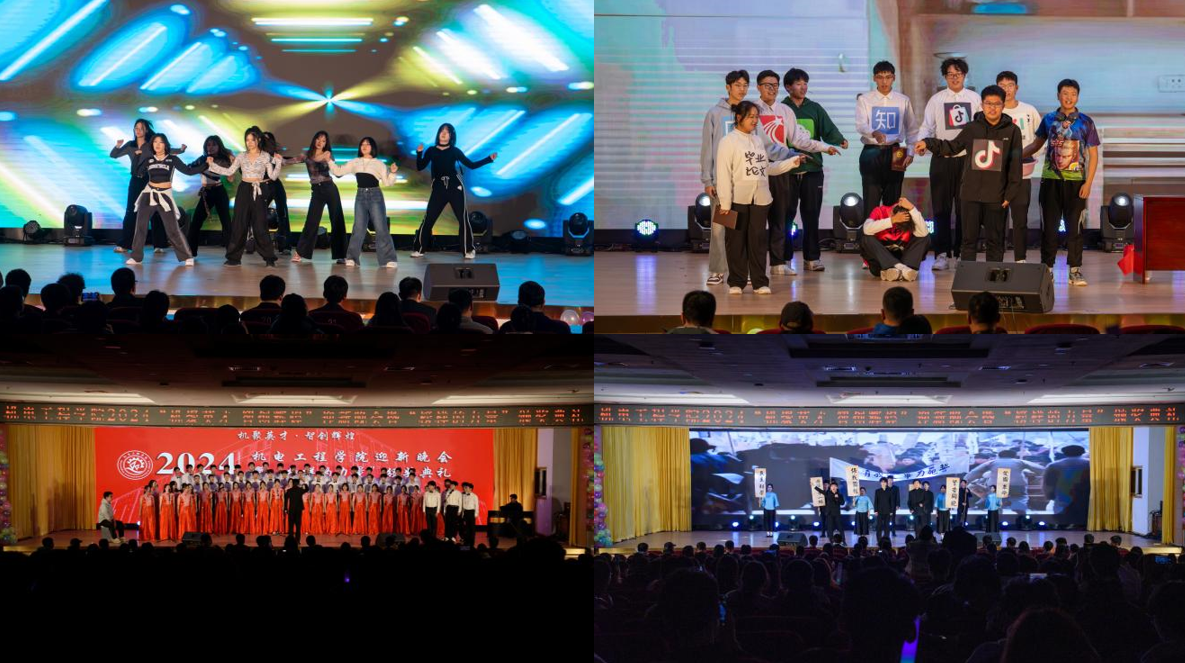 本次迎新晚会以“机聚英才·智创辉煌”为主题,分为“青青子衿·志怀家国”、“冉冉向新·执光开路”和“灼灼风华·向阳追梦”三个篇章。学院融媒体中心与学院宣传部提供技术支持,通过线上线下同步直播的方式,共吸引在线观看人数2.7万人次。师生们欢聚一堂,节目涵盖歌舞、器乐、朗诵、小品、情景剧等多种艺术形式。晚会在开场舞《BLACK MAMBA》充满青春动感的舞姿中拉开帷幕。情景剧《何为青年 青年何为》展示了新时代青年以闪亮的青春、扎实的行动通过回望历史、展望未来的故事形式书写青春华章,发出了属于机电学子的时代强音。学院合唱团带来歌曲《平凡之路》,阿卡贝拉的演唱形式令人耳目一新,深入人心的歌词和优美动人的旋律,传达着平凡人追求梦想、勇往直前的精神。机电研究生学子的朗诵《少年中国说》带给了观众一场文字与武术的完美碰撞,展现出中华儿女的英姿飒爽和传统文化的独特魅力。歌曲串烧节目以柔情的旋律与深情的歌词交织,声声传情,动人心弦。歌舞《舞动青春》自由欢快、热情奔放,点亮青春之我。小品《时间都去哪了》以独特的视角,在为大家带来欢笑的同时,传递出在注意力碎片化的时代里,珍惜光阴的生活态度和价值观。朗诵《机遇青春 志愿有我》更是引领广大青年学子到祖国最需要的地方去,用脚步丈量祖国大地,绽放青春之花。最后,晚会在热情洋溢、欢乐温馨的《相亲相爱》师生歌舞表演中落下帷幕。