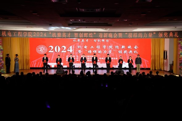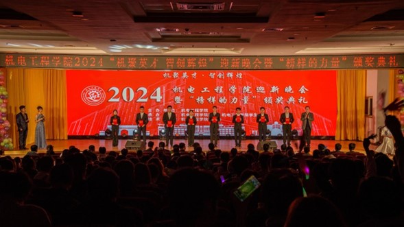 韶华不负启新程,青春作笔续华章。11月22日,机电工程学院2024“机聚英才·智创辉煌”迎新晚会暨“榜样的力量”颁奖典礼在崂山校区第二报告厅举办。学院党委书记任允晓、党委学生工作部副部长李春家、校团委副书记李浩、学院副院长杨化林、学院副院长李剑光、学院党委副书记兼副院长杨小明、各兄弟学院团委书记代表以及全体团委老师和2024级全体新生参加晚会。