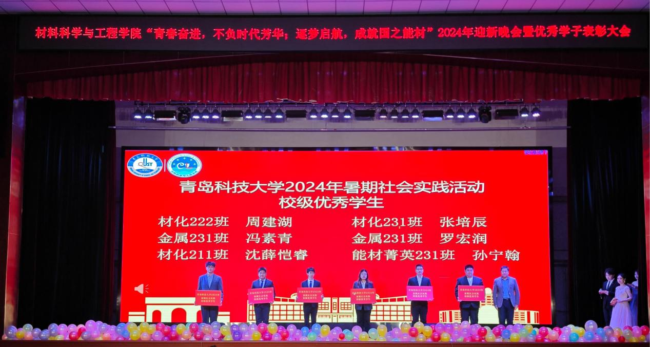 11月26日,材料学院2024年“青春奋进,不负时代芳华;逐梦启航,成就国之能材”迎新晚会暨优秀学子表彰大会于四方校区西礼堂举行,学校学生工作处副处长尤亭亭、学校团委副书记李浩、材料学院党委书记孟照国、党委副书记兼副院长葛夫国、副院长隋凝、副院长孙瑞雪、各教研室主任、全体辅导员及师生代表参加了晚会。