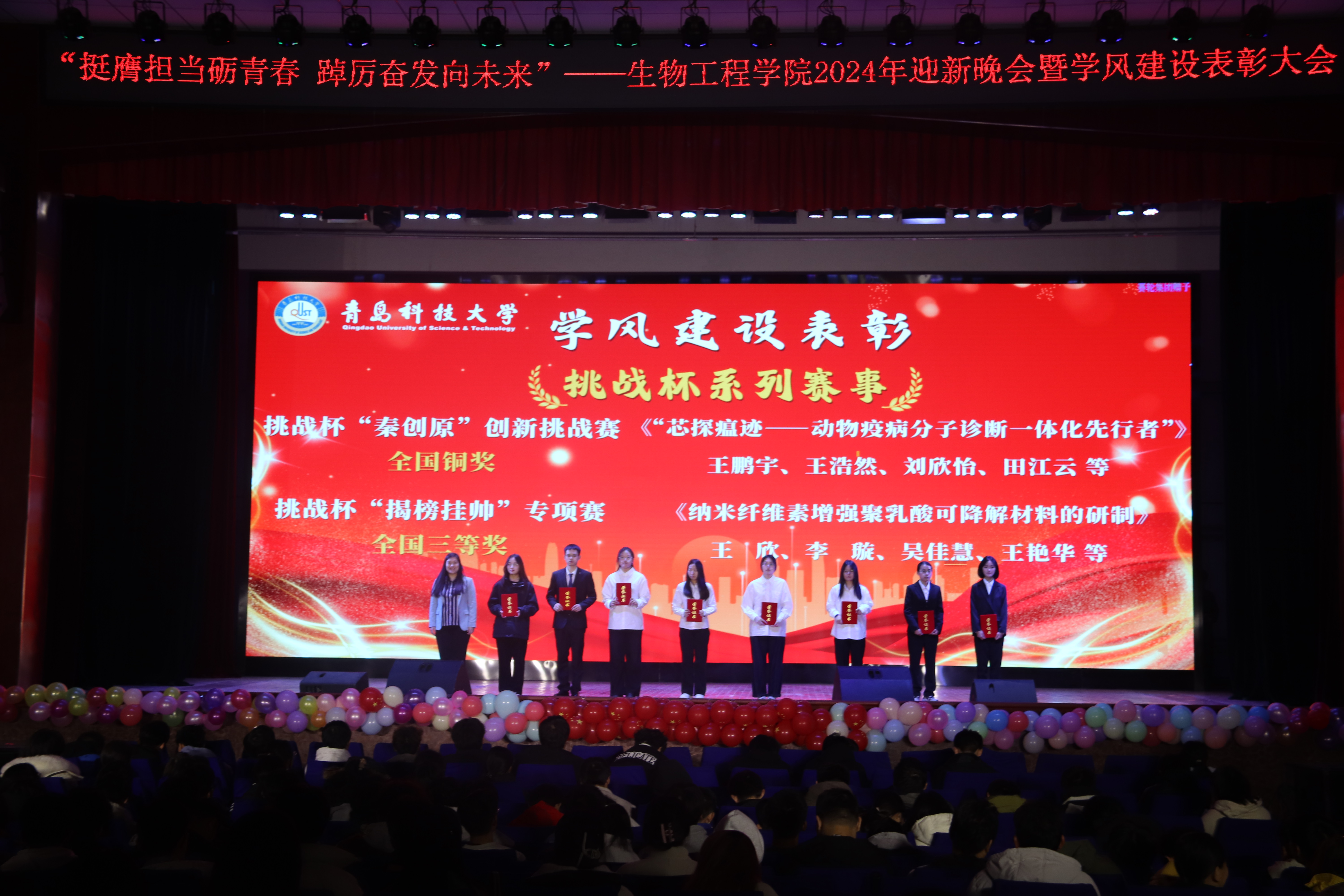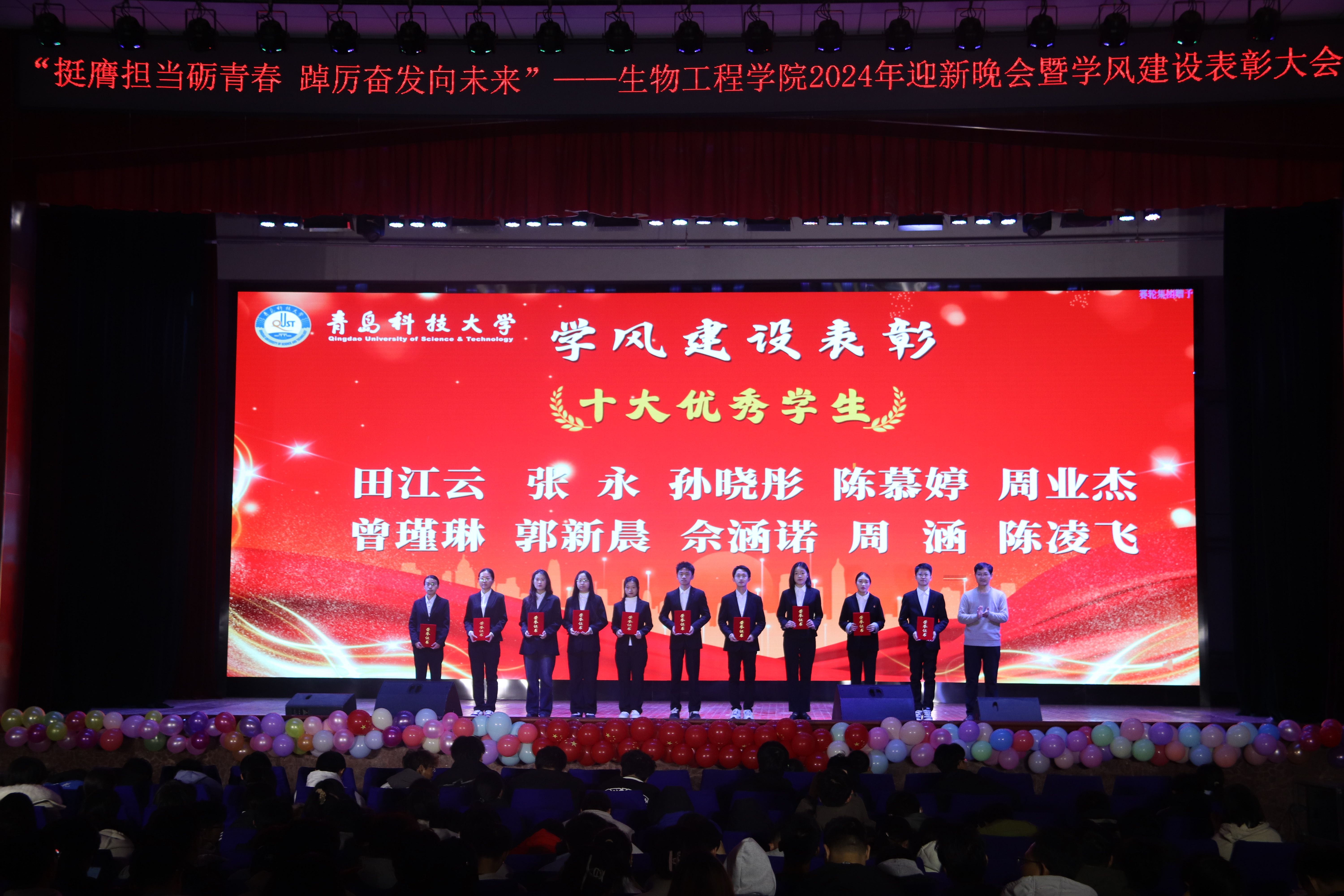为进一步丰富校园文化活动,激励广大青年勇担时代之责,加强学院学风建设与文化建设,11月29日,生物工程学院于四方校区西礼堂举办“挺膺担当砺青春,踔厉奋发向未来”2024年迎新晚会暨学风建设表彰大会。党委学生工作部副部长李春家、校团委兼职副书记王邑、生物工程学院党委书记周宪锋、党委副书记兼副院长刘浩、副院长李昉、副院长孟祥民、学院全体辅导员和2024级全体新生出席本次晚会。