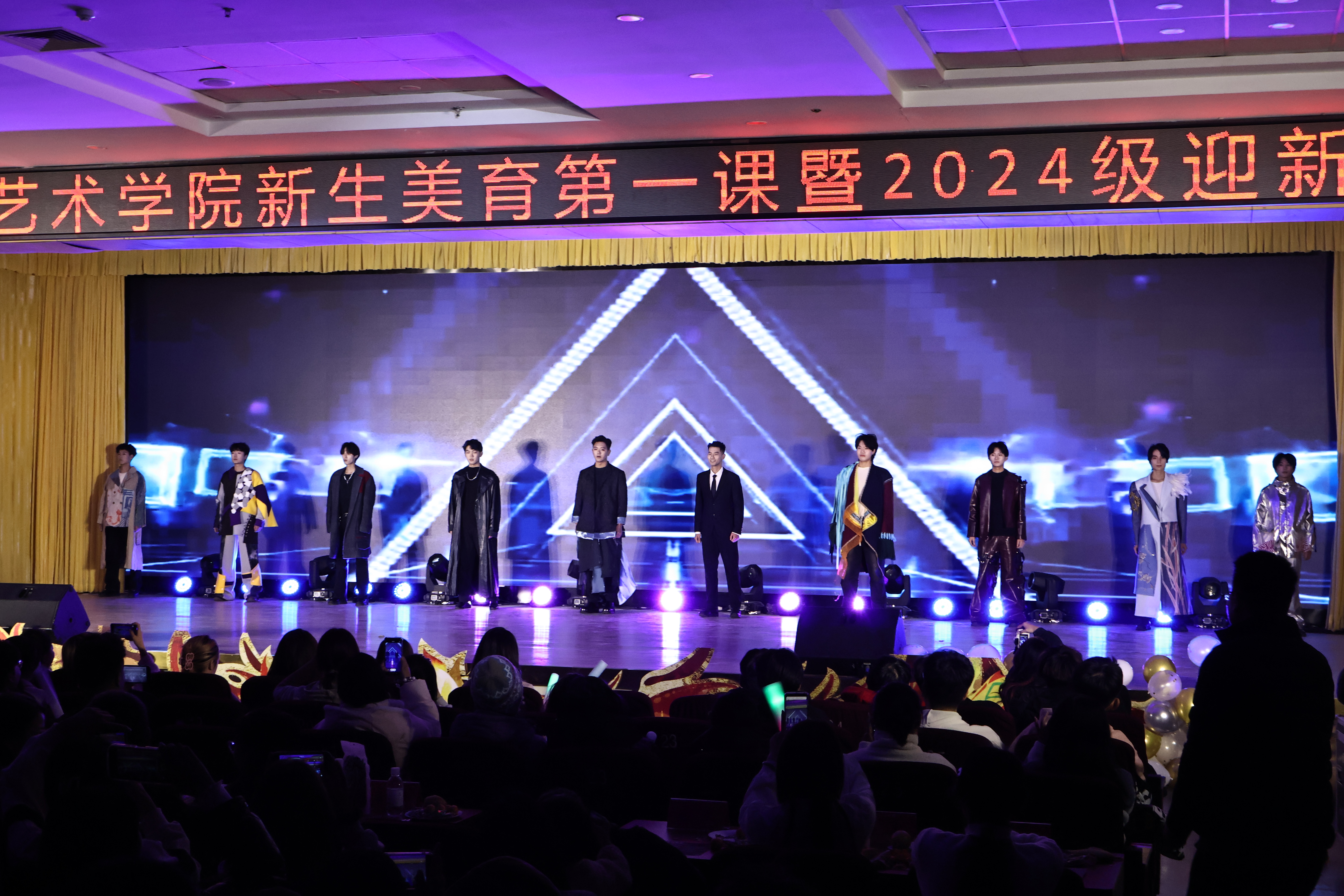 冬夜流光,星华璀璨,金蛇起舞迎新旦,12月10日晚,“艺路繁花”艺术学院新生美育第一课暨2024年迎新晚会在崂山校区第二报告厅隆重举行。学生处副处长尤亭亭,校团委副书记李航,后勤处副处长周晓英,艺术学院党政领导和师生代表共计600余人欢聚一堂,共度美好时光。