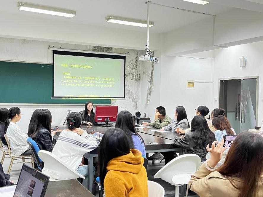 为提升学生学术水平,帮助学生理解与学习实践创新经验,服务学生成长成才,10月18日,艺术学院团委于212室召开“创意无界·竞逐辉煌”求思得论坛暨艺讲堂活动。本次讲座邀请我院聂楠竹老师及23级研究生为大家讲解艺术设计学科竞赛实战经验与启示,会议由研究生于嘉慧主持,各年级研究生积极参会。