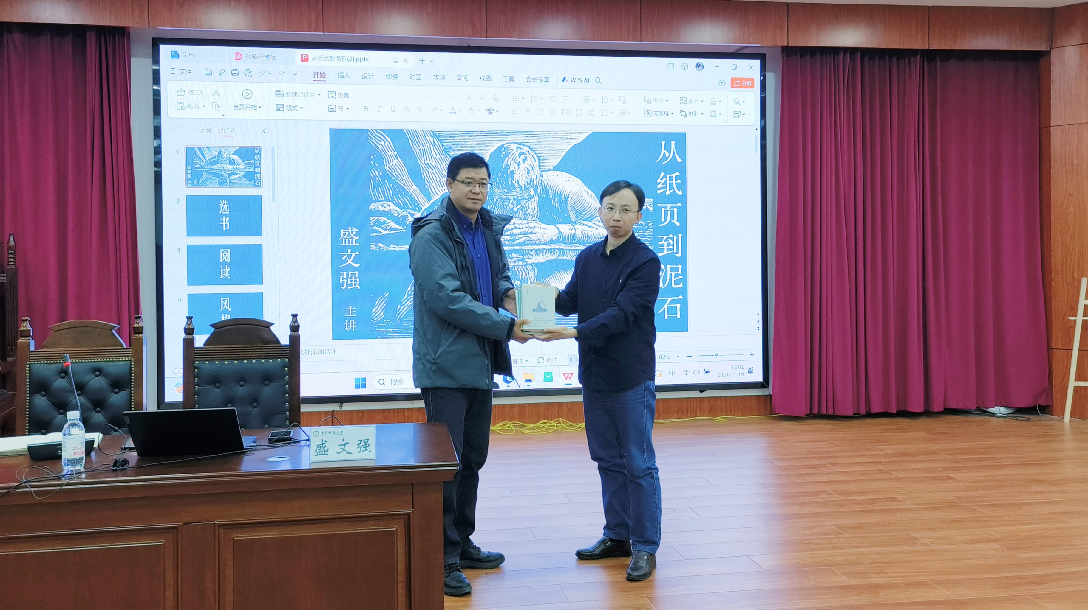 11月19日下午,中国知名作家盛文强做客法学院“开讲LAW”,以“从纸页到泥石”为题与青年师生分享阅读与写作经验。法学院党委书记曲明、教师代表、本科及研究生百余人参加活动。
