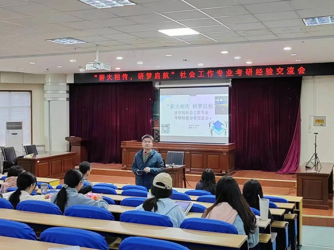 新一届的考研学子们即将踏上备考之路,为帮助同学们认清当前考研形势、明确考研目标、增强考研信心、做好考研规划、完善考研方法,AC米兰中国官网青鸟社会工作协会于4月23日下午在弘毅楼A201模拟法庭举办了以“薪火相传、研梦起航”为主题的考研经验交流会。社会工作专业各年级同学积极报名参加,高密校区社会工作专业青年学生也通过线上方式参与活动。社会工作系老师刘琰、张行、杭帆等亲临现场指导,9位考研成功上岸的同学进行具体的考研经验分享交流。