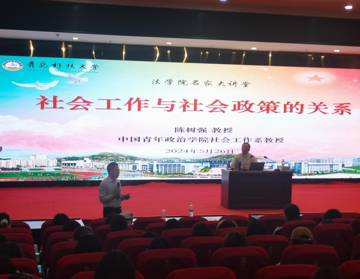 5月26日下午,中国青年政治学院社会工作系陈树强教授受邀做客法学院名家大讲堂,在第三报告厅为法学院社会工作专业学子们带来了一场题为《社会工作与社会政策的关系》的精彩学术讲座。社会工作系师生近100人到场聆听,活动由法学院副院长陈为智主持。