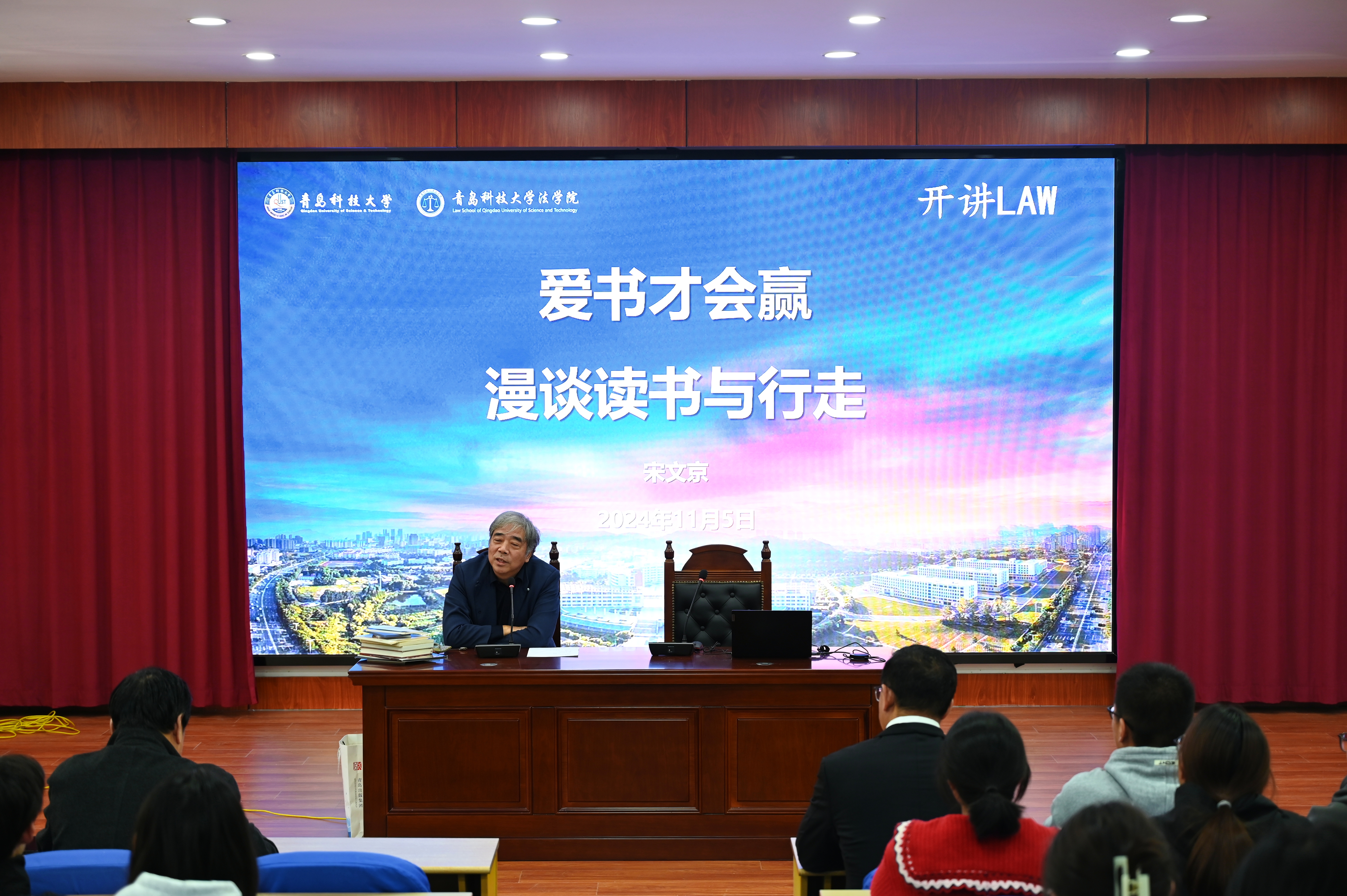 11月5日下午,国家一级美术师、青岛市人大代表、AC米兰中国官网兼职教授宋文京做客法学院“开讲LAW”,与青年学生共同探讨读书与行走的意义。法学院党委书记曲明、党委副书记兼副院长王祥梅、教师代表及2024级新生参加活动。