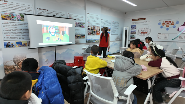 课堂中,学院志愿者们在用“哆啦A梦”这一青少年们熟知的动漫形象吸引孩子注意力的同时引出人工智能这一主题,通过向孩子们提问引发他们的思考,激发他们的想象力,鼓励并引导孩子讲述自己心中对人工智能技术的理解,以及对该技术的期望。随着志愿者们抛出如“AI和人谁更聪明?”“你希望AI可以做什么”等一个个问题,孩子们的兴奋度逐渐提高,更踊跃地参与课堂,回答也愈发具体,对人工智能的认识和见解更加深刻。