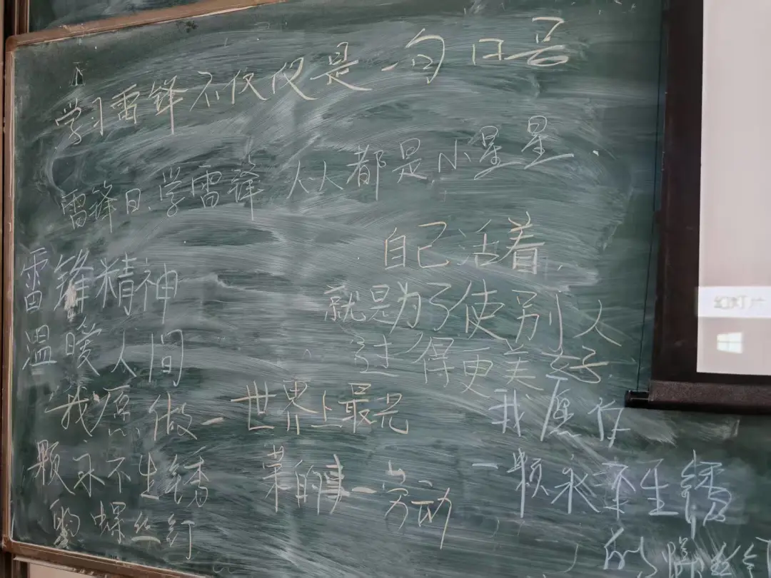 “共话心声”环节中,青年学生们纷纷走向黑板,拿起粉笔,庄重地写下对雷锋精神的理解与感悟。有人摘抄雷锋日记里“对待工作要像夏天一样的火热”,表达对敬业的尊崇;有人写下自己的决心:“在学习中践行干一行专一行,攻克难题,提升自我”。黑板上密密麻麻的话语,那是青年学生们对雷锋精神的深刻思考。青年学生们从被动聆听转为主动表达,对雷锋“干一行专一行”精神有了更透彻的理解。这些话语不仅是文字,更是大家的精神誓言,是青年学生们将躬行一生的精神,永远学习的精神榜样。
