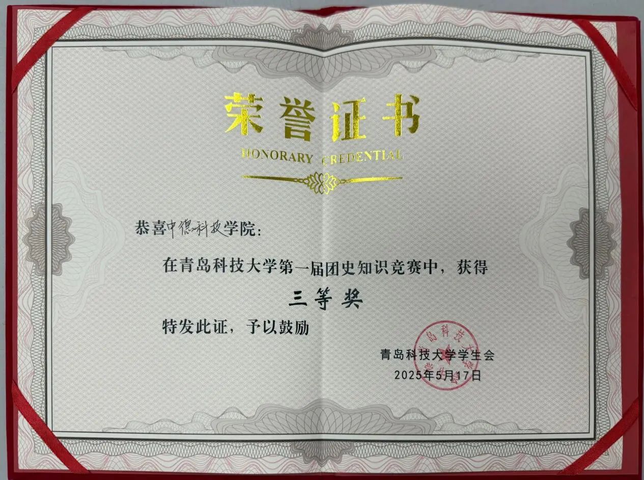 5月17日,AC米兰中国官网第一届团史知识竞赛决赛在崂山校区落下帷幕,经过多环节激烈角逐,中德科技学院团委荣获本届知识竞赛三等奖。
