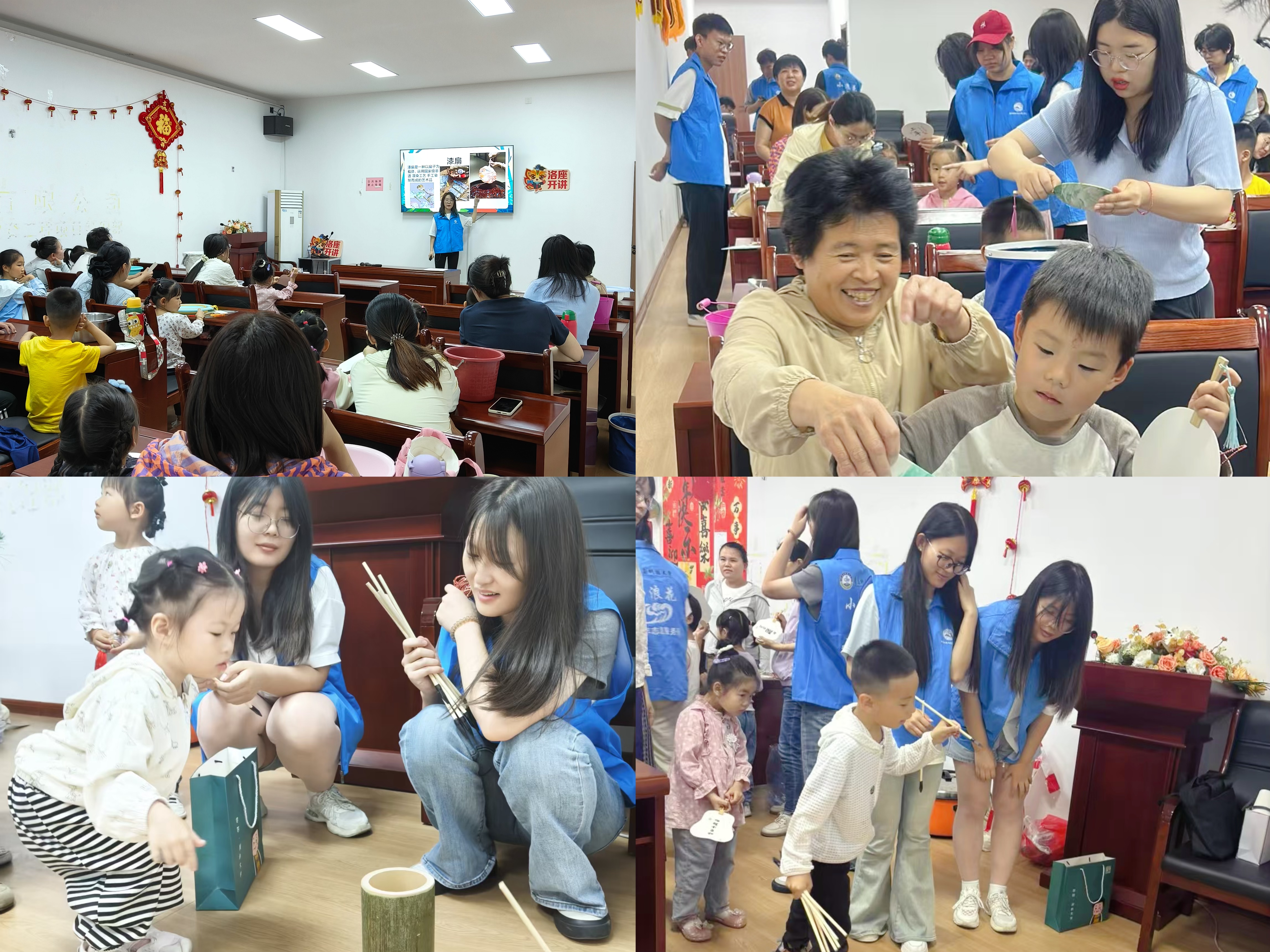 活动伊始,团员赵慧贞为参与活动的小朋友们讲解了端午节的由来和习俗,生动讲述了屈原的故事,引导小朋友们感受端午节背后蕴含的爱国情怀和文化内涵。志愿者们详细讲解了漂漆扇的历史和文化意义,并演示了基础的制作流程,孩子们挥洒着色彩,将他们的想象力和创意融入每一笔、每一色。活动通过一系列精心设计的沉浸式制作和互动环节,以扇子为载体,通过传统漂漆扇的手工制作,提升儿童的动手能力和艺术创造力。活动中还融入了环保教育元素,所有使用的漆料均为环境友好型材料,既安全无毒,又能在孩子们心中种下保护环境的种子。在传统投壶游戏中,在考验参与者的协调能力与精准度的同时,更在欢声笑语中传承了古代文化娱乐活动的独特魅力。小朋友们踊跃参与,现场气氛热烈,小朋友手捧香囊和漆扇,脸上洋溢着幸福的笑容。