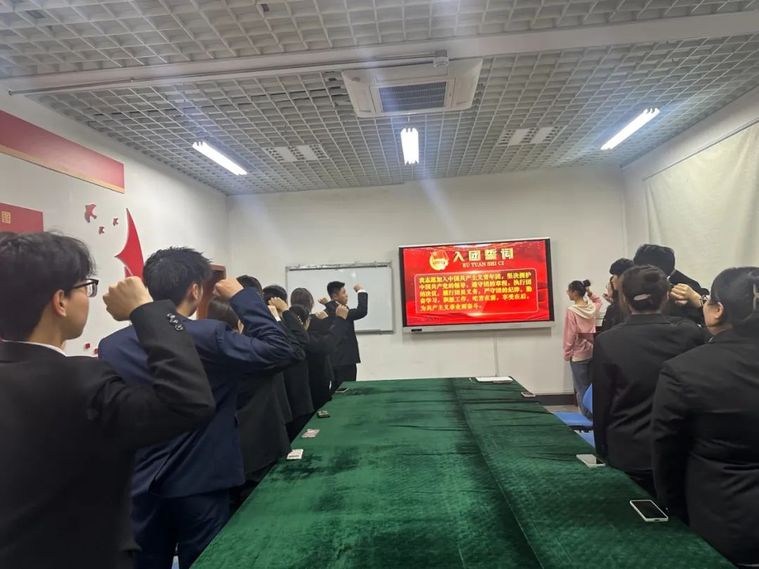 新发展团员学生代表别沅展,带领全体团员高举右拳,面向团旗庄严宣誓。