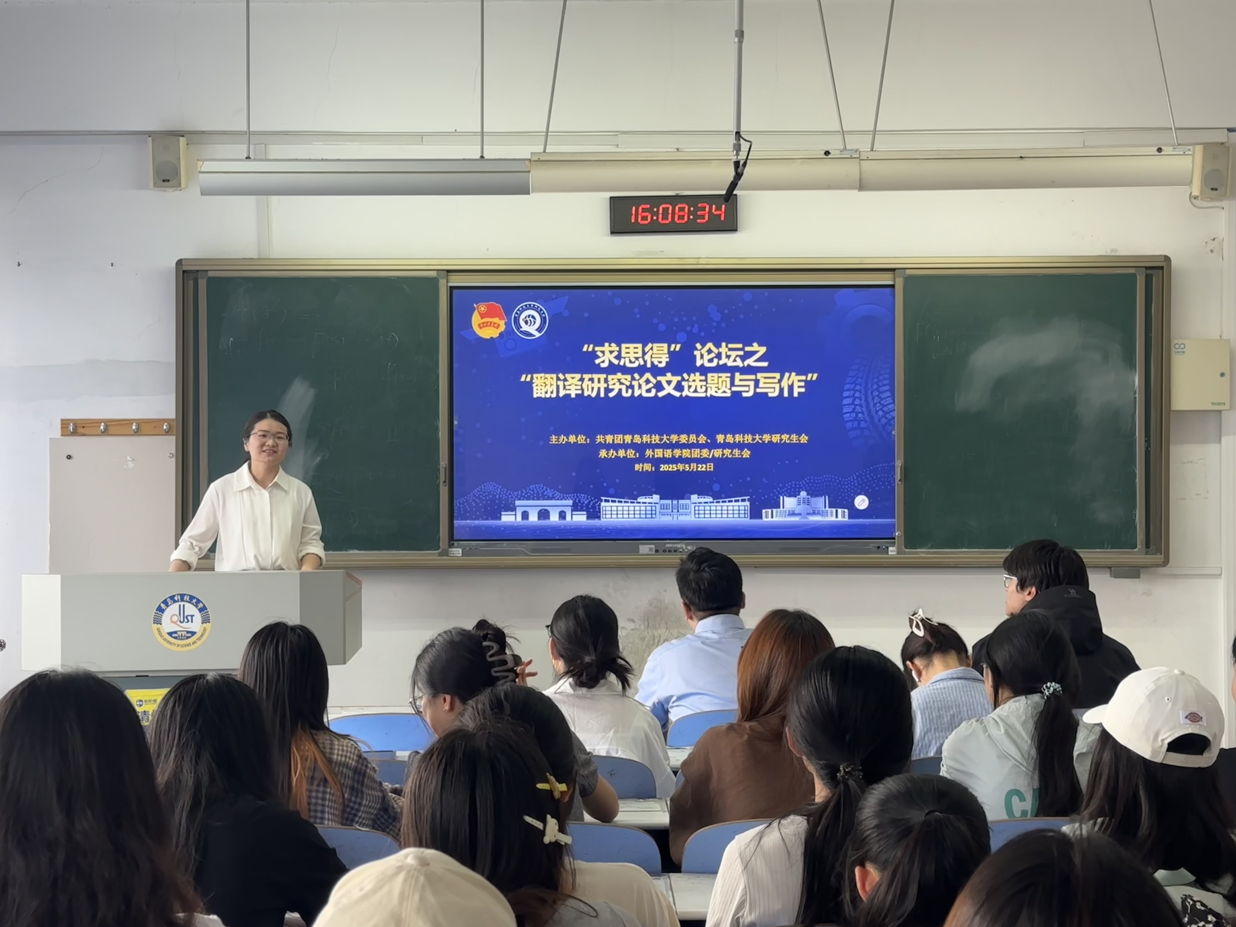 外国语学院团委“求思得”论坛近日在弘毅楼B407举办。中国海洋大学翻译学博士侯莹莹以“翻译研究论文写作”为主题开展学术讲座。