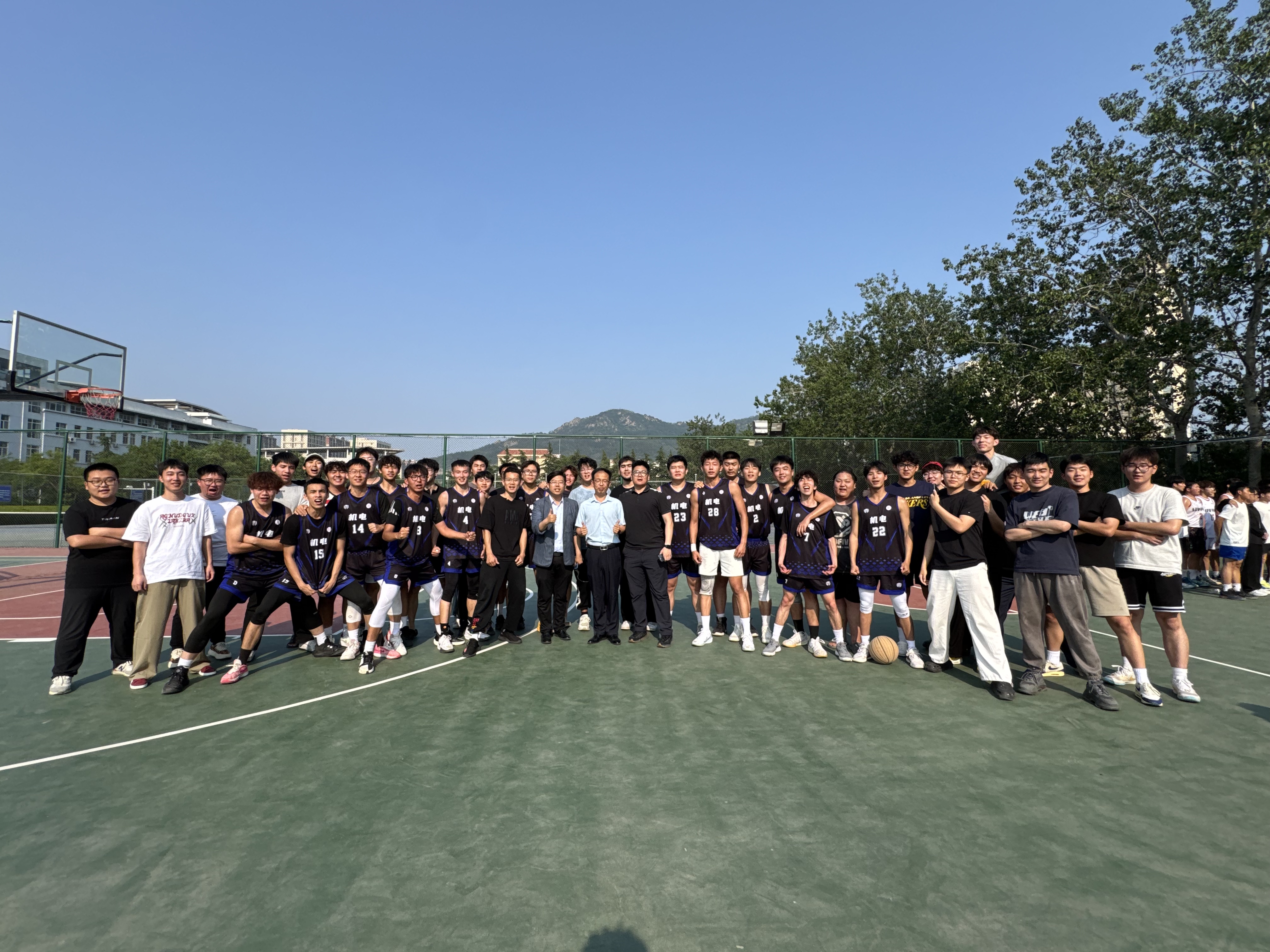 决赛现场,机电工程学院篮球队与强劲对手展开巅峰对决。队员们及时调整战术、稳控节奏,以默契配合打好攻守反击。终场哨响时,比分定格胜利,队员们相拥庆祝,场边掌声雷动。荣耀背后,是教练团队的悉心指导、球员们日复一日的刻苦训练,以及团委老师的全程支持。