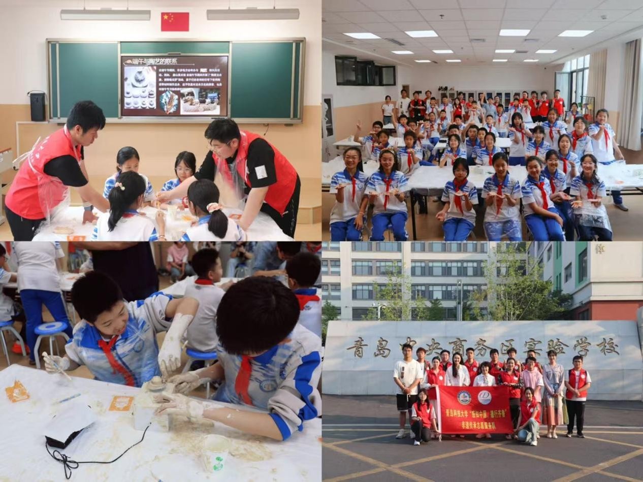 非遗润心进校园,薪火相传育新苗。5月28日,学院“感知中国,德行齐鲁”非遗文化传承实践队前往青岛中央商务区实验学校,开展了“端午与非遗黑陶”文化课堂。志愿者以屈原故事为引,解析端午习俗内涵,并带领学生亲身体验黑陶制作。
