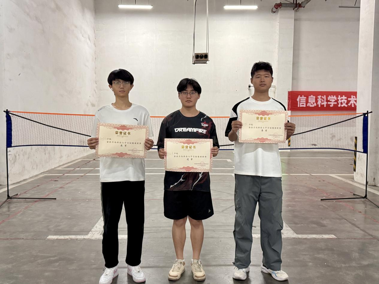本次毽球联赛为小组赛,小组赛中晋级的队伍进行决赛。小组赛为三局两胜制,每一局中先达到11分的队伍获胜。经过激烈比拼,信息学院斩获崂山校区第一名。