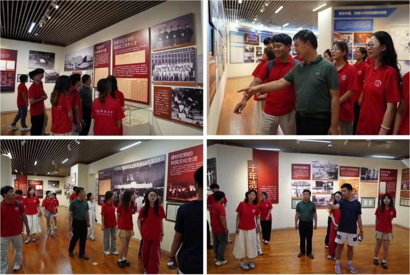 在图书馆,实践团参观了校史馆、自习室与摄影展。校史馆内,从建校初期泛黄的珍贵文献,到如今闪耀着科技光芒的科研成果展示,从早期质朴的教学仪器,到现代高端的实验室模型,学校的发展脉络犹如一幅宏大画卷在学生们眼前徐徐展开,使大家清晰地看到一所高校在岁月长河中沉淀下的深厚学术根基;自习室内,北化学子们专注研读的身影,仿佛构成了一幅静谧而充满力量的画卷。他们沉浸在知识海洋中的专注神情,营造出浓厚的学习氛围,在无声之间,向来访的学子们传递着“潜心向学”的强大精神力量;以“科技与人文”为主题的摄影展,犹如一扇独特的窗口。通过镜头所记录下的科研精彩瞬间与丰富多彩的校园生活,让学生们在感受学术严谨的同时,也体会到了学术之外那一抹温暖的人文关怀。这些场景相互交织,如同五彩丝线,逐渐编织出学生们心中更加清晰、具体的“理想校园”模样。