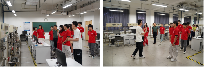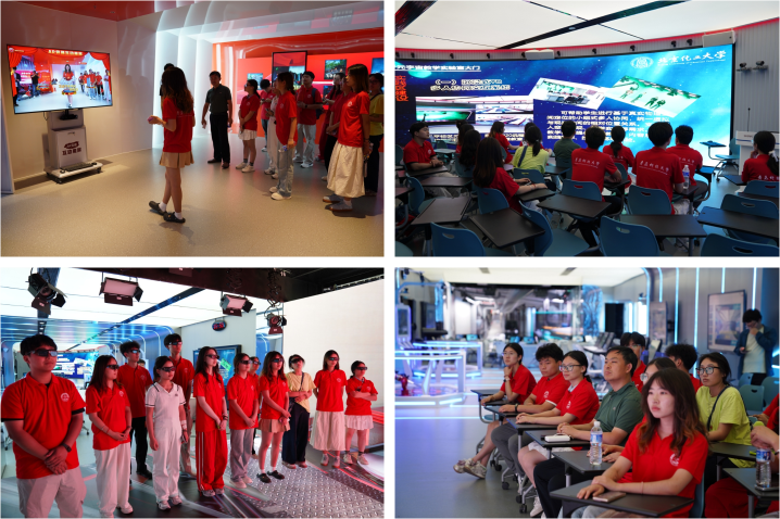 在实验楼G104数字化智能教学未来中心,实践团仿佛搭乘上了一辆科技快车,通过VR虚拟仿真技术,如同身临其境般“走进”化工厂生产车间,在虚拟环境中亲自模拟操作反应设备,细致观察化工流程。原本抽象晦涩的专业知识,在这一刻变得触手可及、生动可感。不仅如此,红色教育实践模块的沉浸式体验,更是让大家在互动中深刻领悟革命精神的内涵。这种“科技+教育”“技术+思政”的创新融合模式,如同为学生们打开了一扇全新的大门,让他们看到了教学创新的无限可能,同时也极大地激发了他们对专业学习的强烈探索欲望。