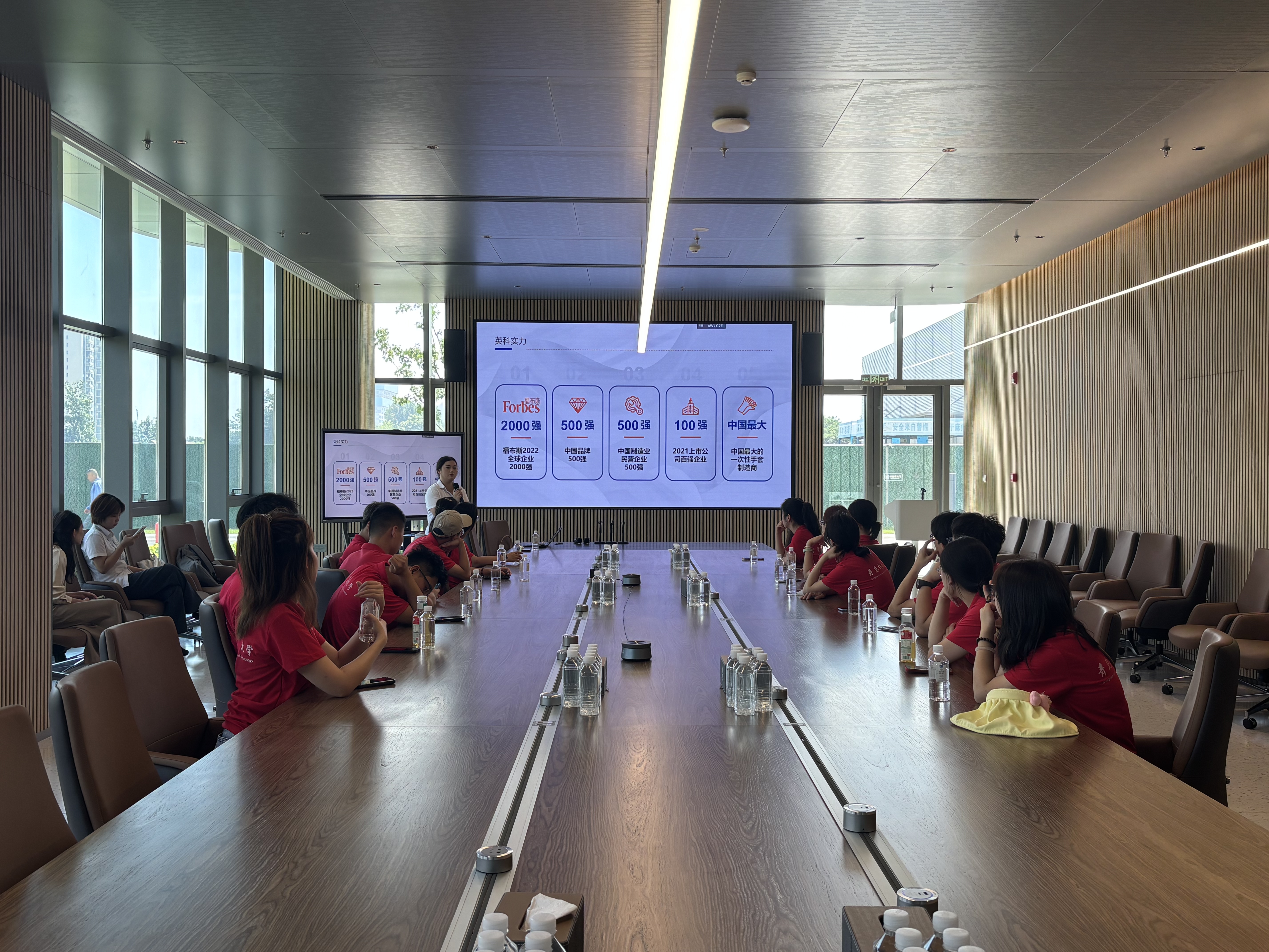 次日,实践团转赴英科医疗。成员们不仅参观了现代化的企业办公楼,更深入核心的PE车间(聚烯烃材料生产车间),零距离接触医疗防护产品核心原材料的生产实况与严格的质量管理体系。参观结束后,英科医疗精心组织了企业宣讲会,详细介绍了公司发展、技术优势与人才需求,并设置了互动答疑环节。活动尾声,企业方还安排了现场面试,为有意向的优秀学子提供了宝贵的实践与就业对接通道。