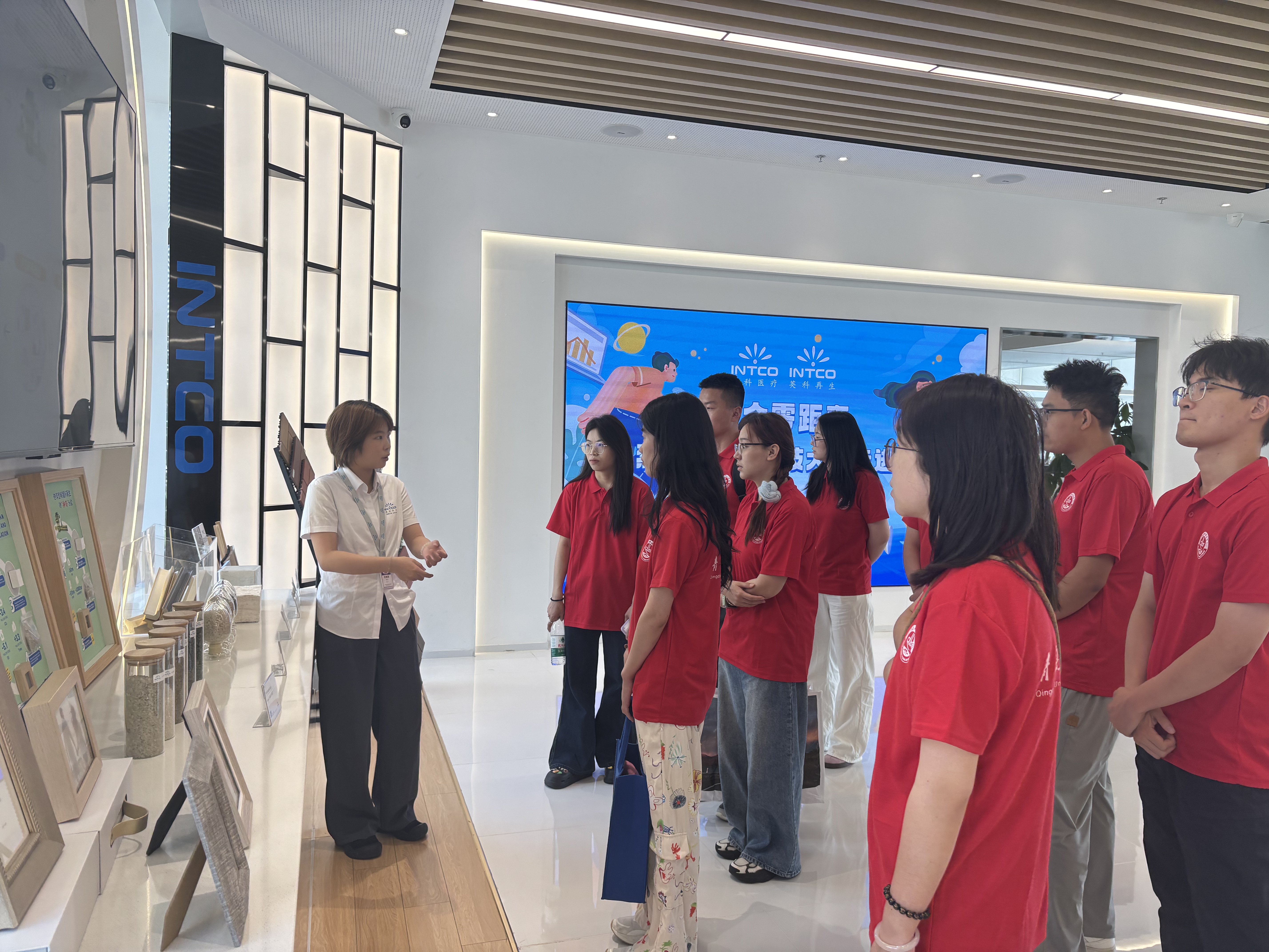7月18日,实践团首站抵达英科再生。在专业讲解引导下,成员们系统参观了英朗前台、画厂生产线、吸音棉制造车间及西厂产品展厅,实地见证了再生塑料从回收、加工到高端成品制造的全流程绿色创新技术。随后,团队驱车前往潍坊青州,实地探访了青州丁腈工厂,对特种材料的生产工艺与控制有了直观认知。