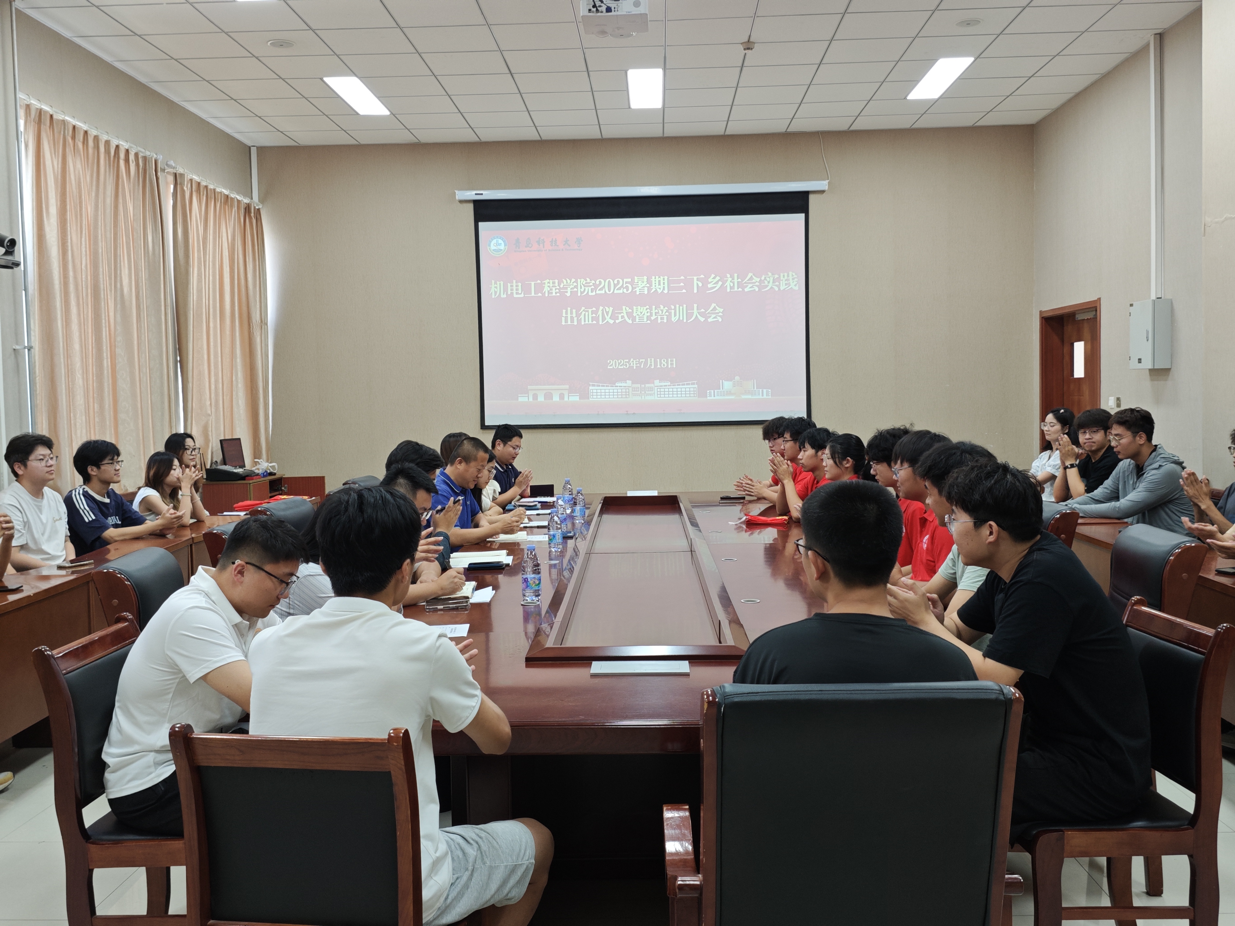 7月18日,机电工程学院在D3-518会议室举行2025年暑期“三下乡”社会实践出征仪式暨安全、技能培训会。学院党委副书记兼副院长杨小明,团委副书记李慧敏、于超,实践团队指导老师及学院校级、院级重点队学生代表参加会议。