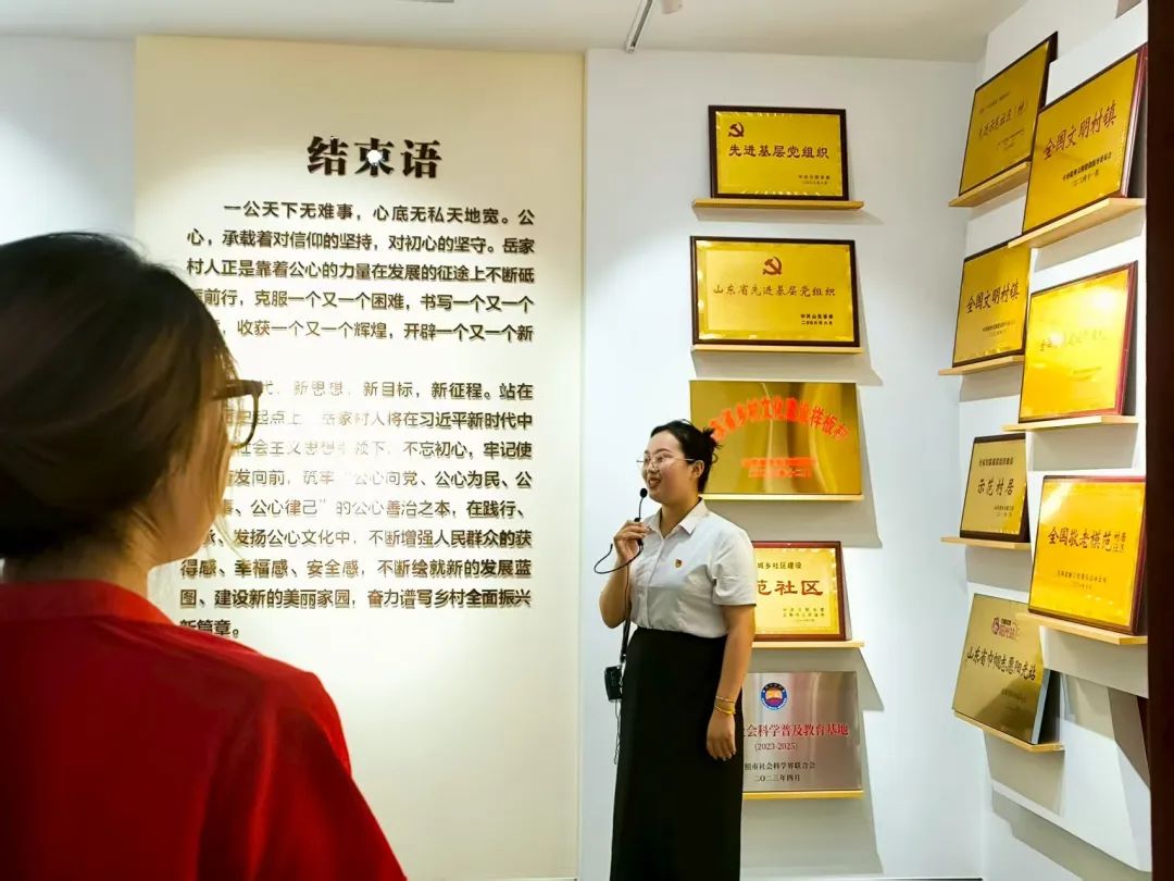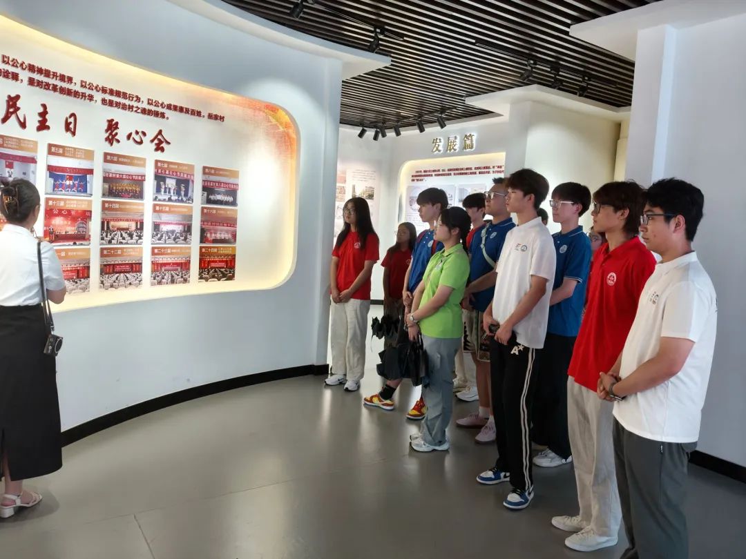 圆梦青科,心系母校馆内讲解员通过创业、发展、公心、振兴、关怀、荣誉六个板块,系统展现了岳家村从昔日贫困村落蜕变为全国知名小康村的非凡历程。实践队员们专注聆听,详细了解公心文化的核心理念、发展脉络及具体实践内容。馆中陈列的每一块奖牌、每一面锦旗,都见证着岳家村人的辛勤付出;每一幅生动画面,都记录着公心实践的丰硕成果,铭刻下村民们艰苦创业的坚实足迹。