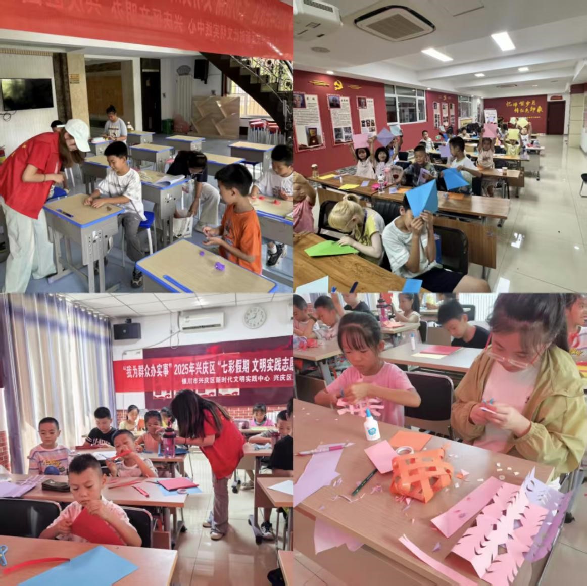 在志愿者们的指导下,孩子们拿起剪刀和彩纸,小心翼翼地裁剪起来,从简单的图案到复杂的造型,每一刀都倾注了他们对非遗文化的热爱。志愿者们也在一旁耐心地帮助小朋友们,鼓励他们发挥自己的想象力和创造力。