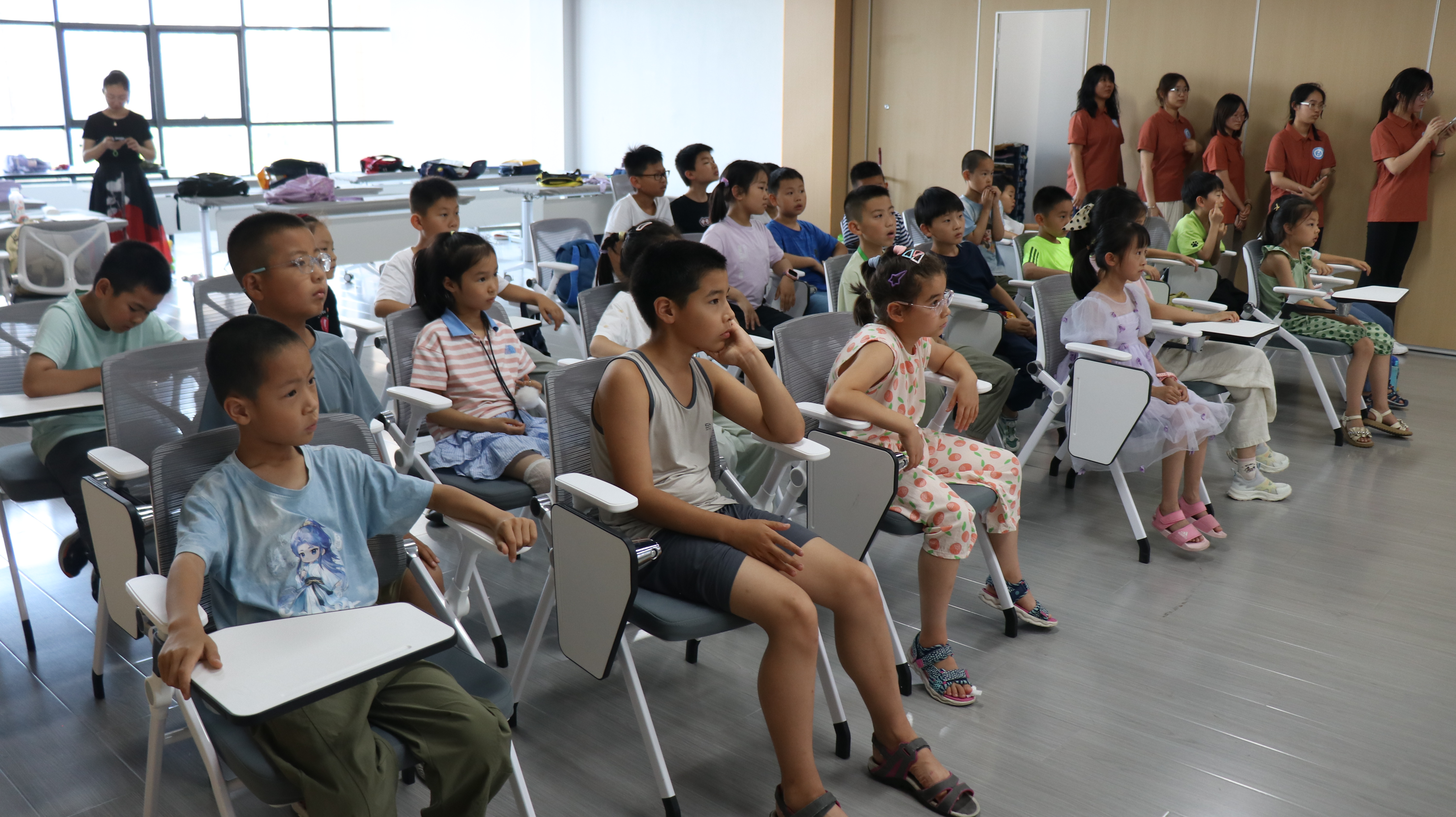 在社区活动中心的教室里,“青禾护旗”实践队的队员们以“护旗”为关键词,开启面向30余名儿童的抗战主题宣讲。为让7-10岁的孩子理解历史,队员们精心设计“故事+互动+体验”的模式,将博物馆学到的知识转化为孩子们能听懂的“成长课”。此次互动中,孩子们的专注与提问,让队员们切实体会到用童趣方式播撒爱国种子,是最有意义的实践互动。