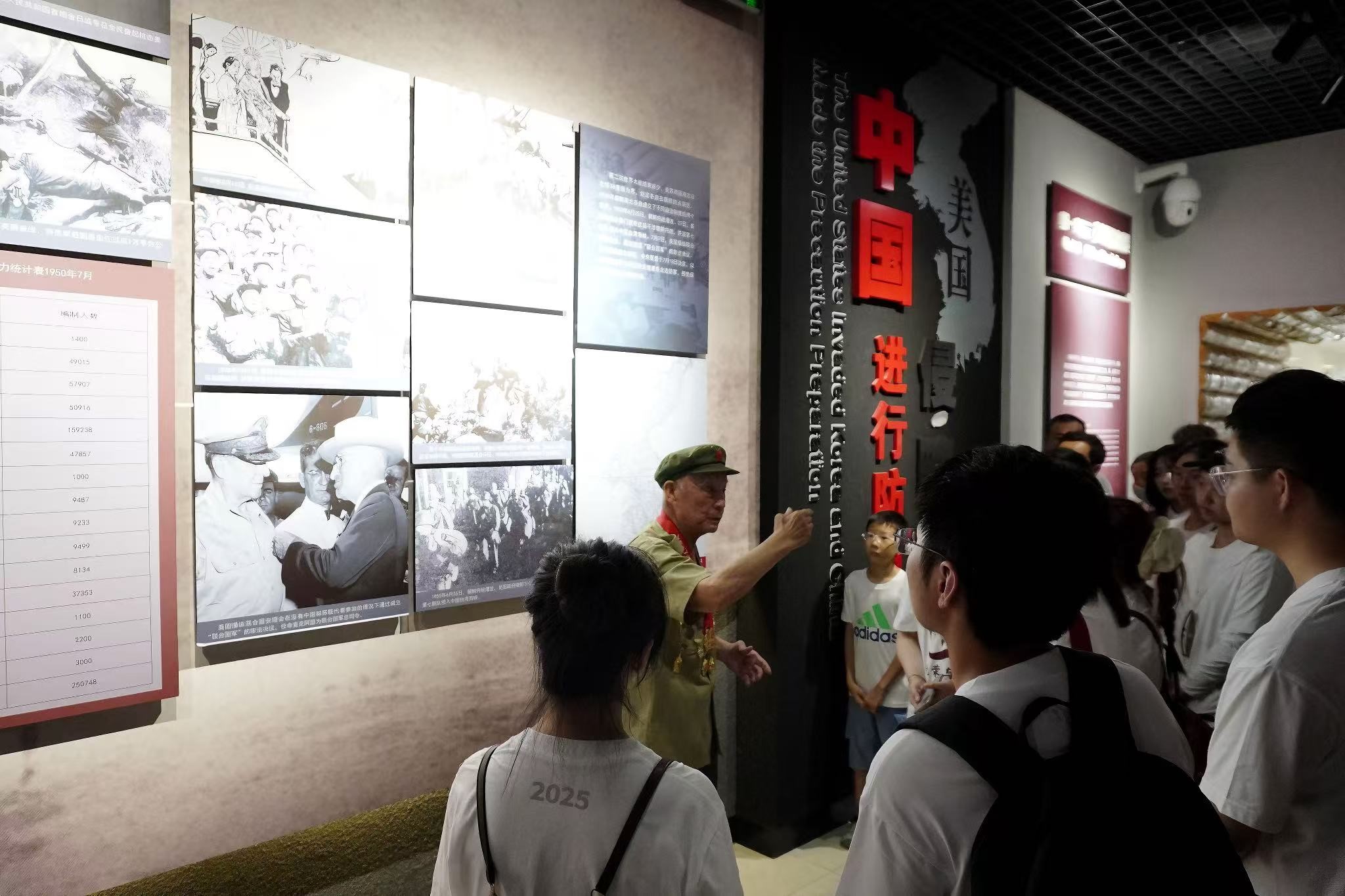 清晨的抗美援朝烈士陵园,走进纪念馆,那些泛黄的照片、磨损的军用品,都在无声诉说着七十多年前的烽火。在纪念馆内,抗美援朝老兵李维波爷爷的出现让现场瞬间安静下来。老人虽已年迈,但谈起当年志愿军在朝鲜战场的峥嵘岁月,眼神依旧明亮:“1952年农历小年,我们包饺子过年。没想到,饺子刚下锅,美军飞机就来了……”一个个鲜活的故事,让团青年们仿佛穿越到烽火连天的战场,深刻体会到“保家卫国”四个字的千钧重量。讲述结束后,三校学子围在李爷爷身边,紧紧握着老人的手,共同合影留念。这张跨越代际的照片,定格了英雄精神的传承瞬间。