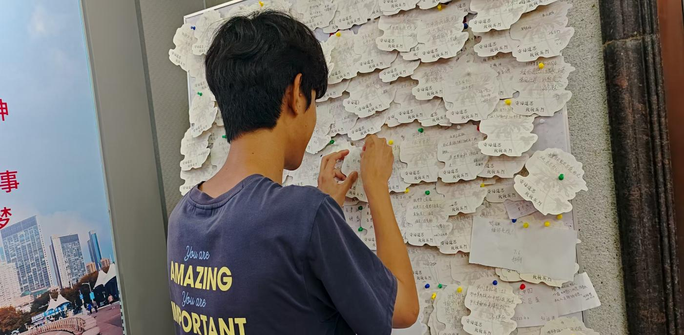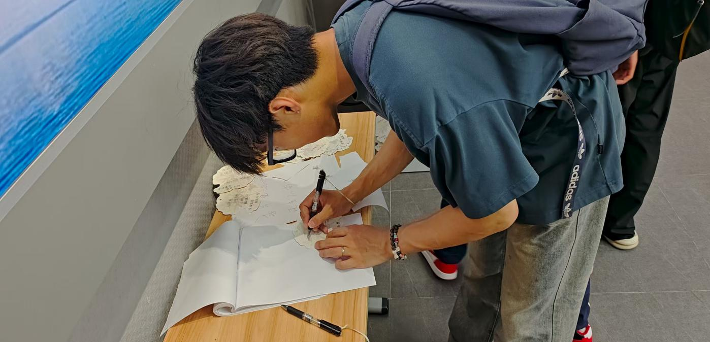 实践团来到互动区域,参与“勿忘国耻·强国有我”爱国卡片签署活动。成员们认真书写卡片,这些卡片不仅承载着青年学子的爱国心与强国志,更成为实践团“传承红色基因”的生动见证。