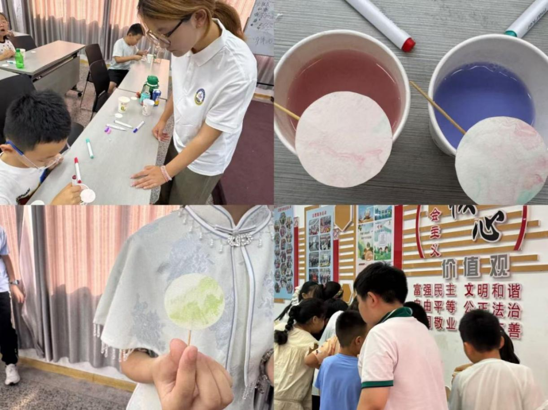 实践团增设漆扇手工制作环节,让文化体验从“听”与“学”延伸到“动手做”。成员们先讲解漆扇的历史渊源,介绍鲁地漆艺的独特风格与文化内涵;随后逐步引导孩子们发挥想象力与创造力,亲手制作属于自己的漆扇作品。小朋友们将卡通笑脸、环保理念融入漆扇当中,这不仅是中华优秀传统文化在青年少一代心中萌芽的直观展现,更成为鲁文化创造性转化、创新性发展的生动见证。