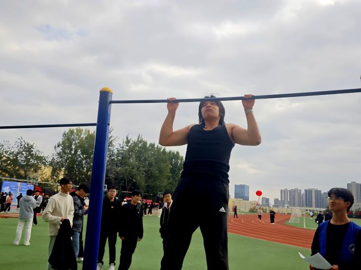 单杠之下,一个个挺拔的身影蓄势待发,引体向上的挑战正式开启!手臂青筋暴起,肌肉线条在阳光下勾勒出坚毅的轮廓,每一次向上攀升都伴随着急促的呼吸与坚定的眼神,这不仅是力量的较量,更是青春不服输的韧劲在闪耀,每多完成一个,都是对自我极限的勇敢突破,都是少年脊梁扛起的责任与担当!其中人工智能232王建涛以20个的优异成绩斩获本次引体向上的冠军!