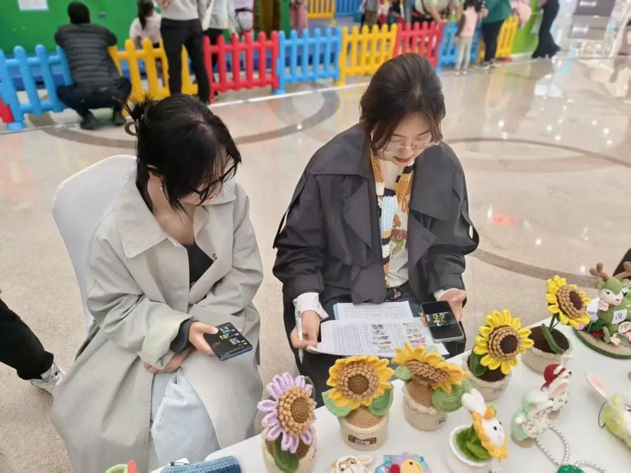 义卖当日,志愿者们在各个环节均展现出高度的热情与责任感。部分志愿者在摊位前耐心讲述手作背后的故事,让每一位顾客都能体会到罕见病创作者的真诚与付出;部分志愿者积极引导人流,使爱心义卖的温暖氛围感染更多人;还有部分志愿者认真记录每一笔善款,确保爱心款项能够精准用于帮扶罕见病群体。现场的手作义卖品广受欢迎,一个个精致的钩织向日葵被爱心人士捧在手中,仿佛传递出阳光与希望。