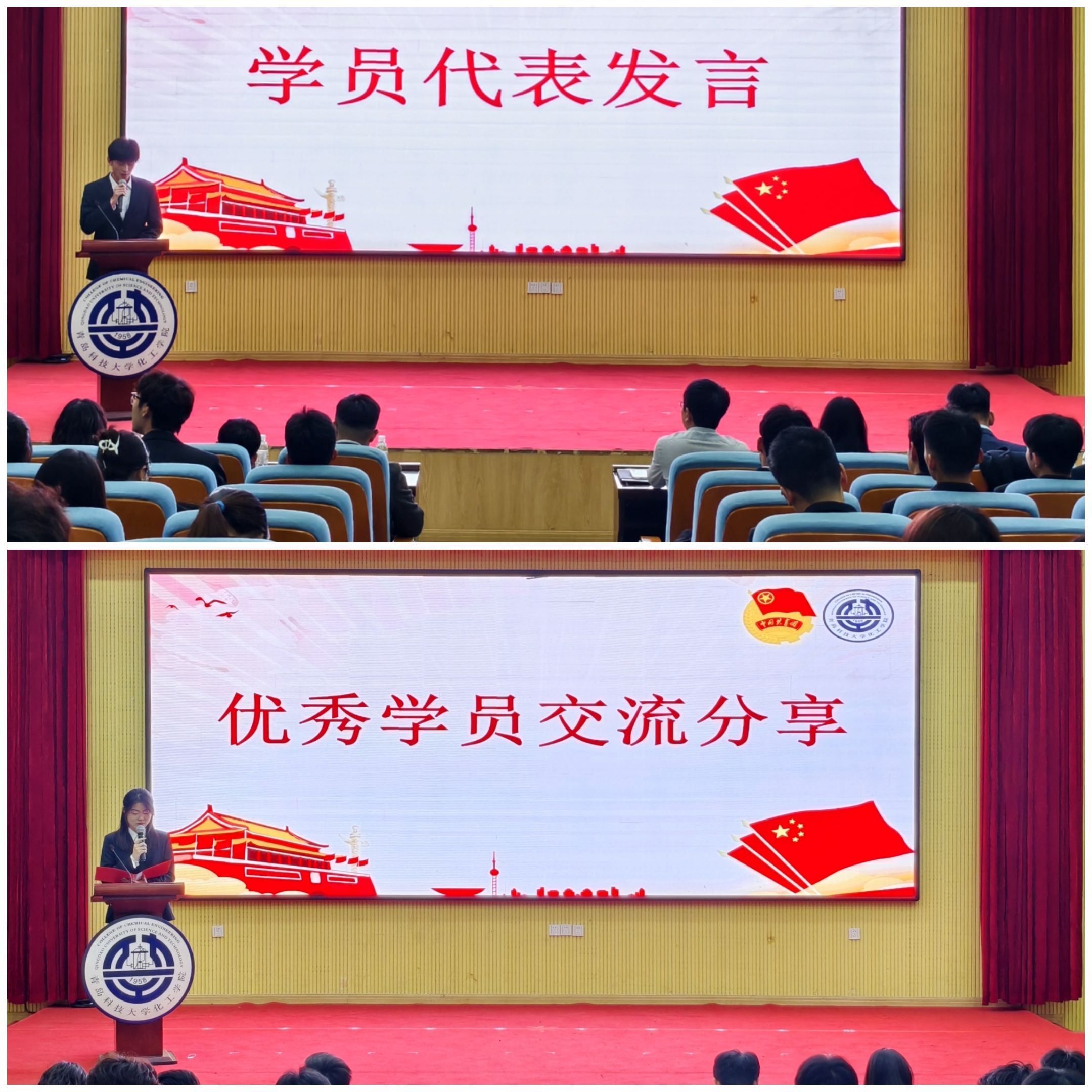 柳晓阳宣读了《化工学院2025-2026学年青马工程培训班实施方案》。殷佳珞宣读了化工学院2025-2026青马工程学员名单。学员代表化工239班曹杰表态发言,从个人政治历练,锤炼品德修为等多个方面,向与会成员发出号召,要自觉提升马克思主义理论修养,做能吃苦肯奉献的新时代青年。往届优秀学员化工236班王建辉同学为学员们分享了自己在青马培训中的成长和感悟。