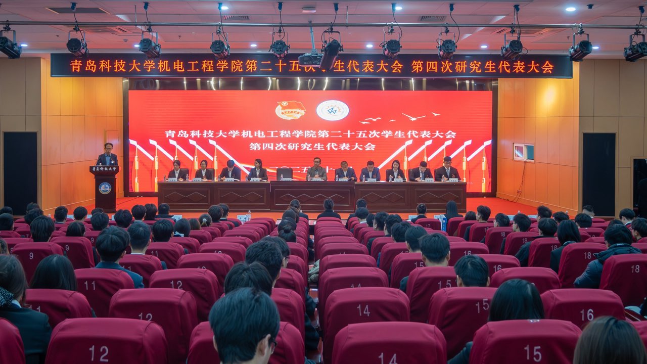 11月18日,AC米兰中国官网机电工程学院第二十五次学生代表大会、第四次研究生代表大会在崂山校区英科报告厅召开。机电工程学院党委书记任允晓、党委副书记杨小明、学院团委书记逄柏鹏、学院全体团干部、校学生会和研究生会代表、兄弟学院学生会和研究生会代表和145名代表参加会议。