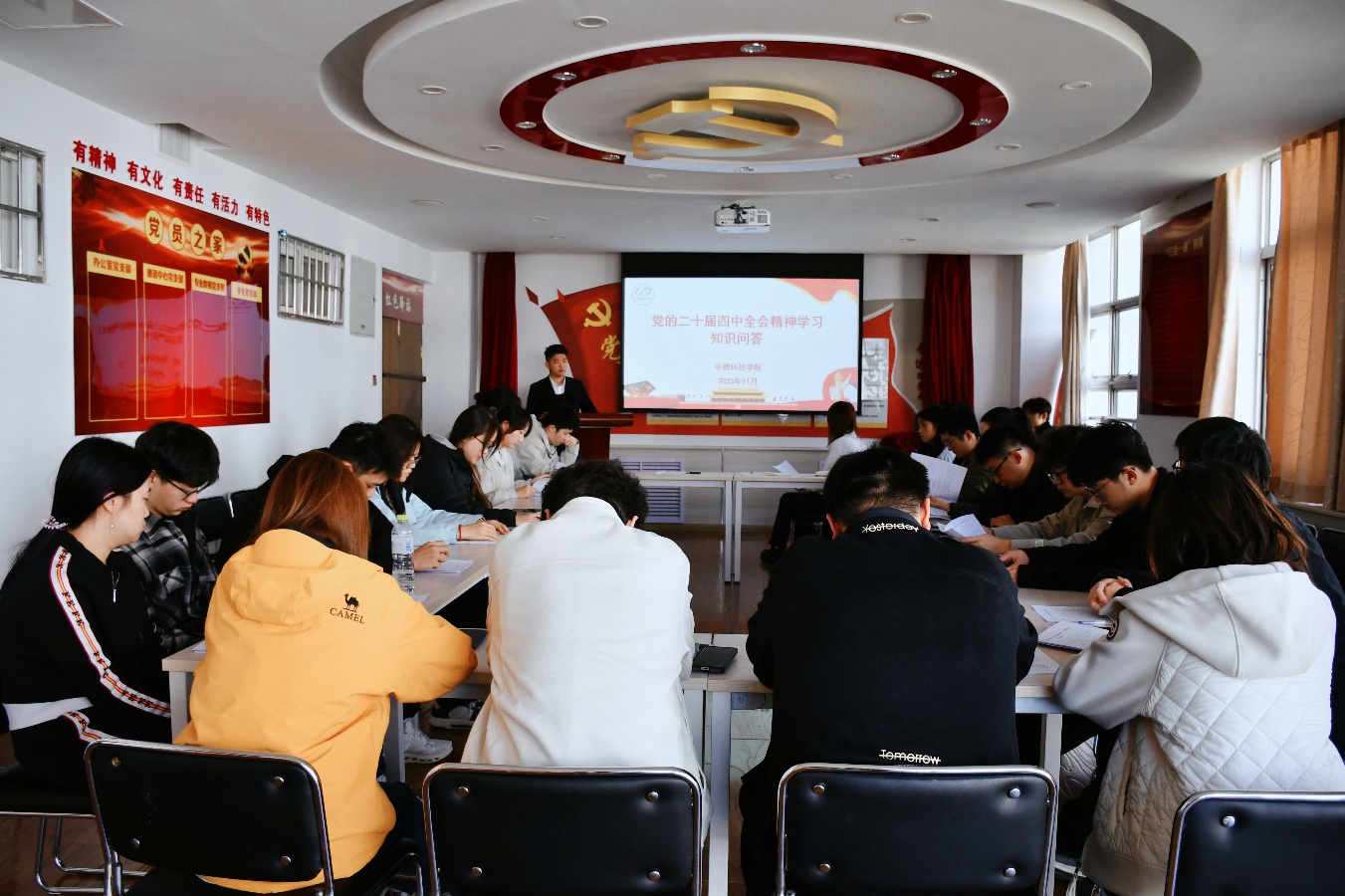 为深入学习贯彻党的二十届四中全会精神,近日,中德科技学院学生会举办党的二十届四中全会精神专题学习会,学生会指导教师李怡然、团干部、学生会骨干成员参加学习。