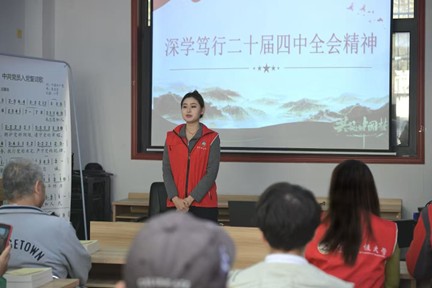 为推动党的二十届四中全会精神深入基层、落地生根,11月19日,高分子学院研究生会“橡尚青年”宣讲团走进盐滩社区,开展“深学笃行二十届四中全会精神”主题宣讲活动,与社区居民共话发展成就、凝聚奋进力量。