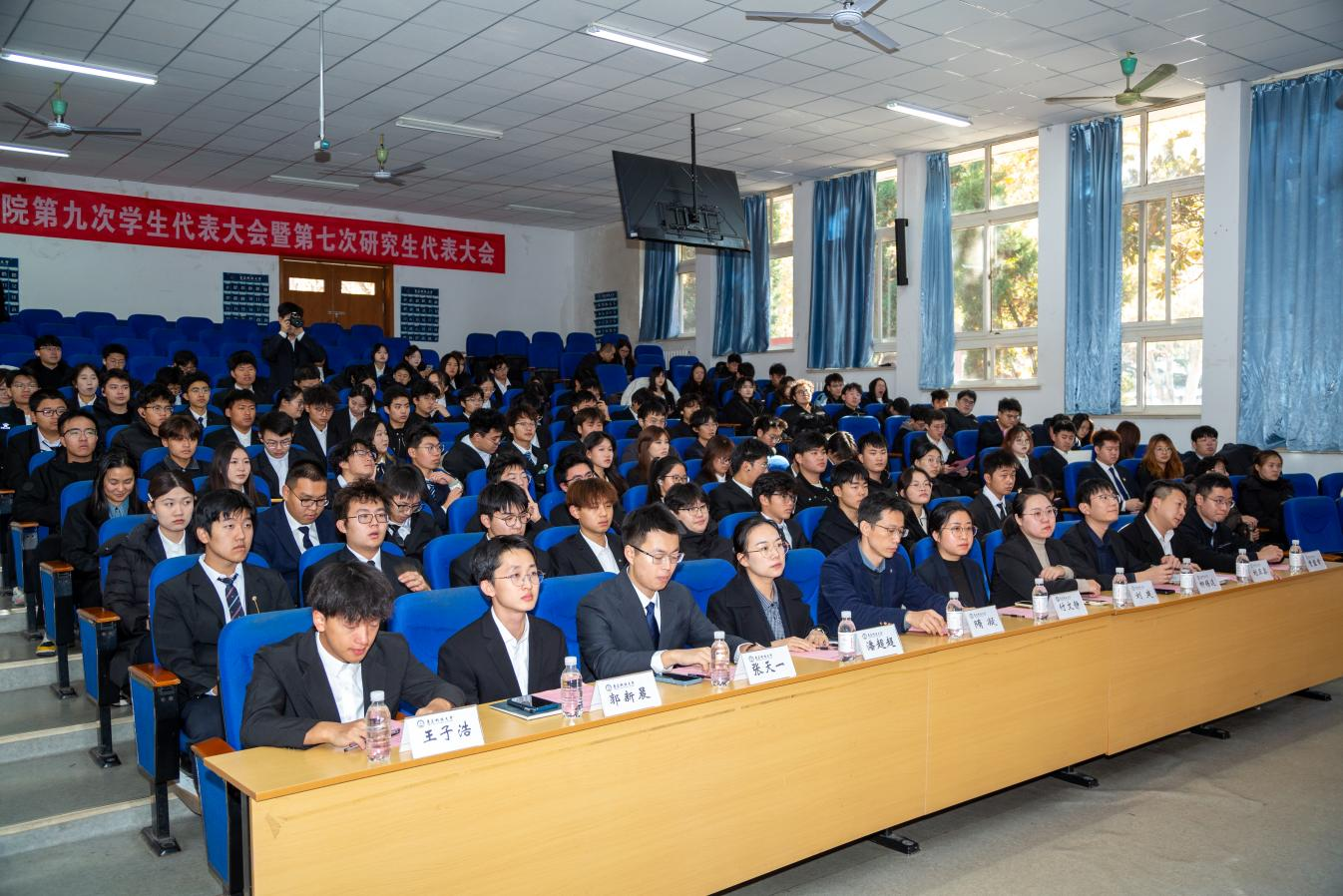 为深入学习贯彻习近平新时代中国特色社会主义思想,全面落实党的二十届四中全会精神,凝聚青年力量、规范学生组织建设、畅通师生沟通渠道,11月18日,材料学院于二教101召开第九次学生代表大会、第七次研究生代表大会。材料学院副院长隋凝,团委副书记兼学工办副主任付文静、潘超超,研究生辅导员刘爽,25级辅导员贾玺章,22级辅导员刘亚鑫,23级辅导员柳锡远,校学生会负责人郭新晨,环境学院学生会负责人王子浩及全体学生代表参加会议,会议由材料学院曾筝主持。