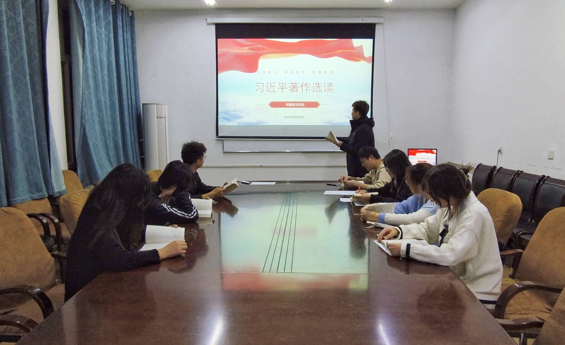 为强化理论学习、筑牢思想根基,引导材料学子在读书研讨中感悟真理力量、汲取奋进动力,材料学院近日以“读原著悟思想,砺初心向未来”为主题开展《习近平著作选读》读书分享活动,本次活动由研究生会周德艺担任主讲。