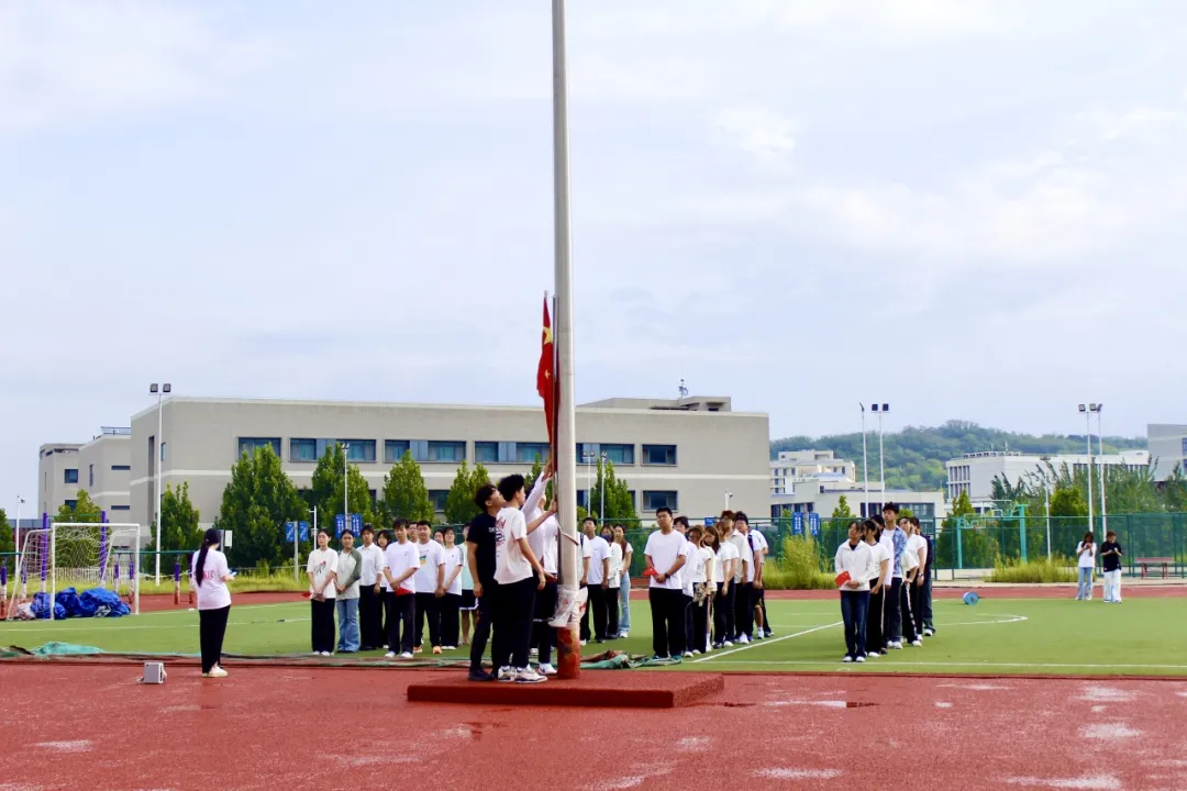 清晨七时,晨光初启,参与仪式的同学们身着整洁的白色上衣与深色长裤,精神饱满,神情肃穆,展现出该院学子昂扬向上的风貌与对历史的深切敬意。仪式在肃穆的氛围中正式开始。国旗护卫队步伐铿锵,护送五星红旗入场。伴随着激昂雄壮的《义勇军进行曲》,鲜艳的五星红旗冉冉升起,全体师生面向国旗行注目礼,高唱国歌,表达对祖国的无限热爱与对革命先烈的深切缅怀。