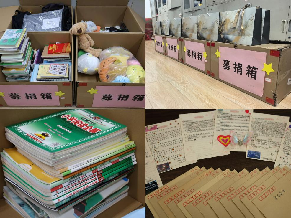 清晨的经管楼311,冬日的寒意尚未散尽,但室内却洋溢着善意暖流。书包整齐排列、画笔与文具被小心归置、一本本少儿读物摞成温柔的高度,玩偶娃娃端坐在阳光下——一场跨越山海的爱心接力,即将在这里悄然启程。