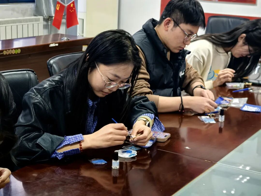 活动伊始,刘敏为同学们解读非遗手作的文化内涵与实践意义:点翠的流光、螺钿的璀璨、烧蓝的雅致,都是古人用智慧凝结的美学结晶。非遗手作不仅是技艺的传承,更是慢下来感受细节、沉淀心性的过程,这与科研中精益求精、潜心钻研的精神不谋而合。她鼓励同学们在动手实践中感受传统工艺的魅力,在专注创作中疏解科研压力。