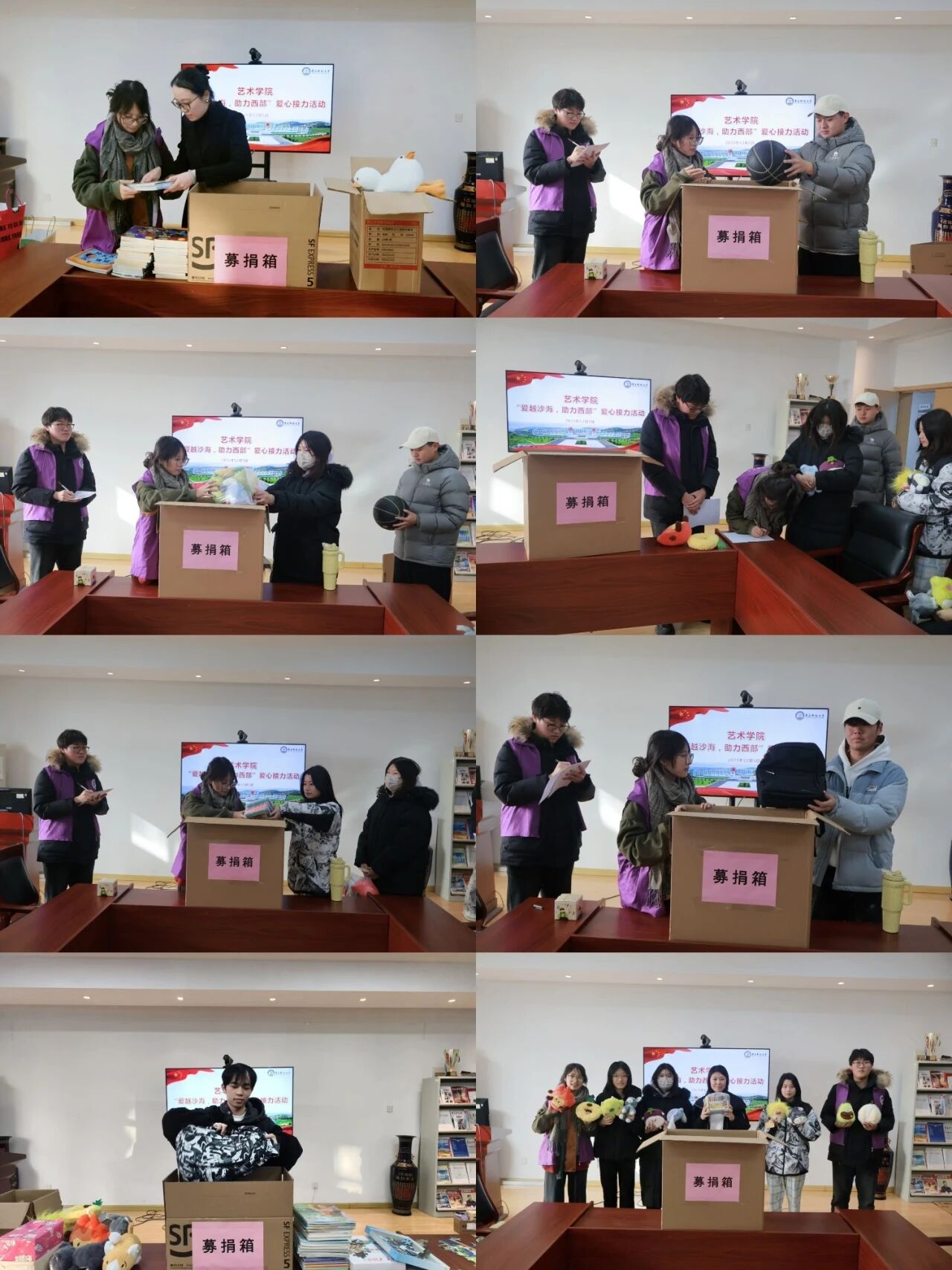 为响应学校号召,支持西部教育发展,在“12·5”国际志愿者日来临之际,艺术学院团委组织开展了“爱越沙海 助力西部”主题爱心捐赠活动。